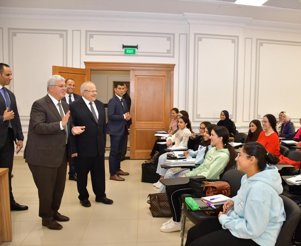 وتفقد عاشور والخشت، مباني وقاعات المحاضرات ومعامل الحاسب الآلي للاطمئنان على انتظام الدراسة بالجامعة الدولية والتي تم تجهيزها وفقًا لأحدث المواصفات والمعايير وأنظمة الجامعات الذكية، كما اطمأن على تواجد أعضاء هيئة التدريس والطلاب وانتظام المحاضرات.