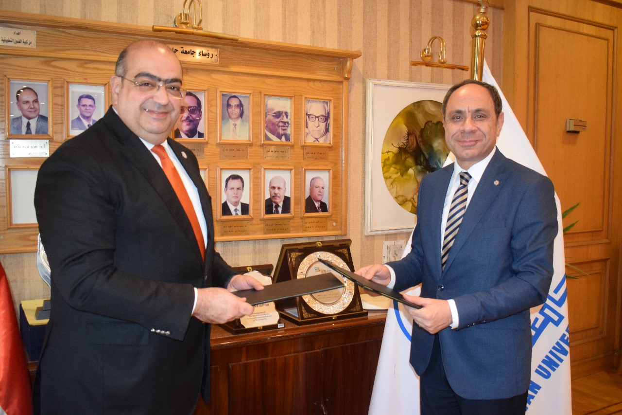 حيث وقع الدكتور وليد السروجي نائب رئيس جامعة حلوان لشئون خدمة المجتمع وتنمية البيئة بروتوكول التعاون مع الدكتور أيمن محرم عضو مجلس الإدارة المنتدب.