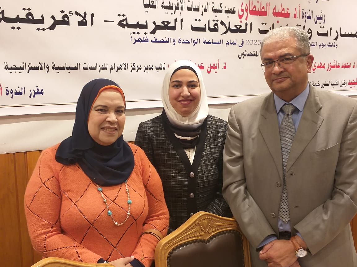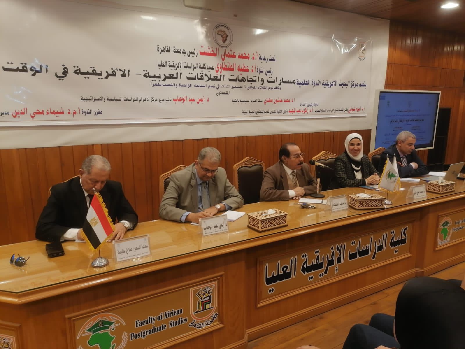 وتناول الدكتور محمد عاشور أستاذ العلوم السياسية بالكلية، مراحل تطور العلاقات العربية الإفريقية في العصر الحديث وتحديدا منذ مرحلة النضال المشترك ضد الاستعمار والتي تحملت مصر فيها الجانب الأكبر من المسؤولية في تقديم الدعم المادي والمعنوي لحركات التحرر الوطني على امتداد القارة الأفريقية شمالا وجنوبا وشرقا وغربا، الأمر الذي كان له صداه ومردوده في وقوف الدول الإفريقية إلى جانب مصر وتعاطفها مع القضايا العربية الرئيسة (القضية الفلسطينية) في أعقاب نكسة عام 1967 واحتلال جزء من أرض مصر الذي اعتبرته الدول الأفريقية احتلالا لأرض أفريقية قطع على إثره عديد من الدول الأفريقية علاقاته الدبلوماسية مع إسرائيل خاصة مع نجاح الجهود المصرية والعربية في الربط بين الممارسات الإسرائيلية والممارسات العنصرية في جنوب أفريقيا، وانتقالا من مرحلة التعاطف الأفريقي إلى مرحلة جهود مأسسة التعاون العربي الأفريقي والتي أعقبت حرب أكتوبر والتي بلغت ذروتها بانعقاد القمة العربية الأفريقية في القاهرة مارس 1977م وصاحبتها طموحات عالية على كافة المستويات سرعان ما انهارت بفعل الخلافات العربية - العربية على خلفية معاهدة السلام المصرية الإسرائيلية وما أدت إليه من انعكاسات سلبية على جهود العمل العربي المشترك، لينتقل التعاون العربي الأفريقي إلى مرحلة جديدة يغلب عليها الطابع الثنائي على اختلاف في حجم ودور كل طرف عبر العقود المختلفة.