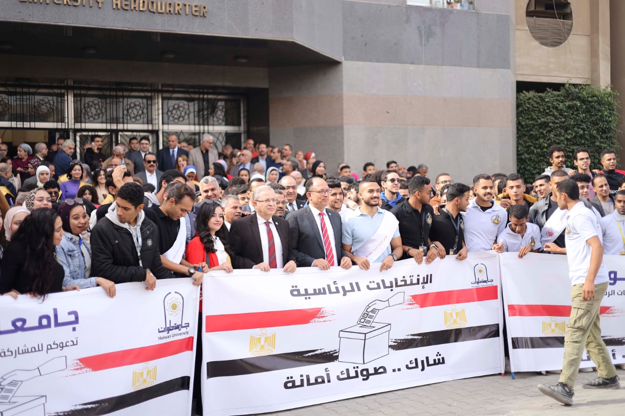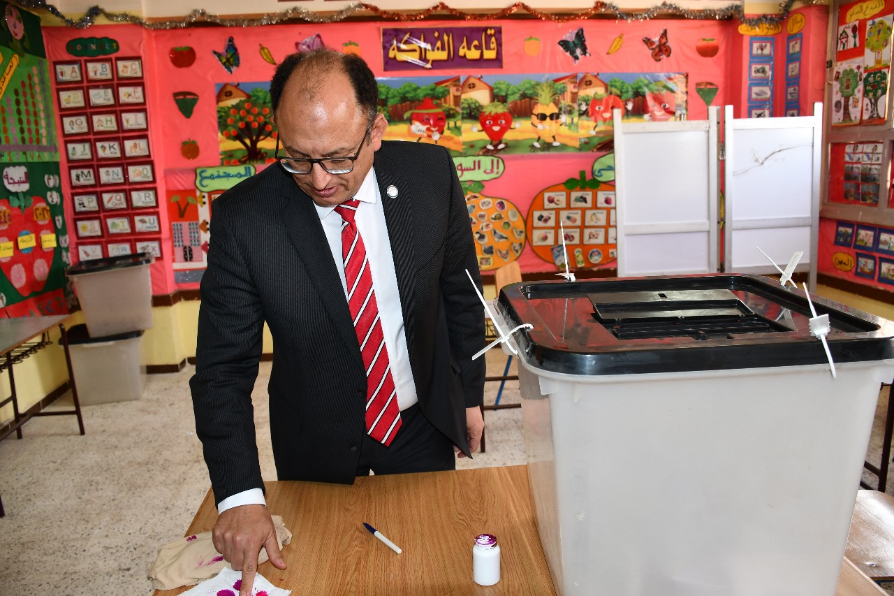 رئيس جامعة حلوان وقيادات الجامعة يدلوا بأصواتهم في الانتخابات الرئاسية