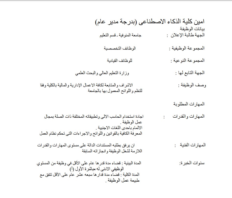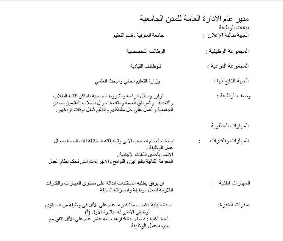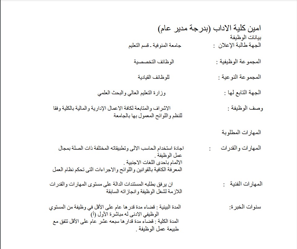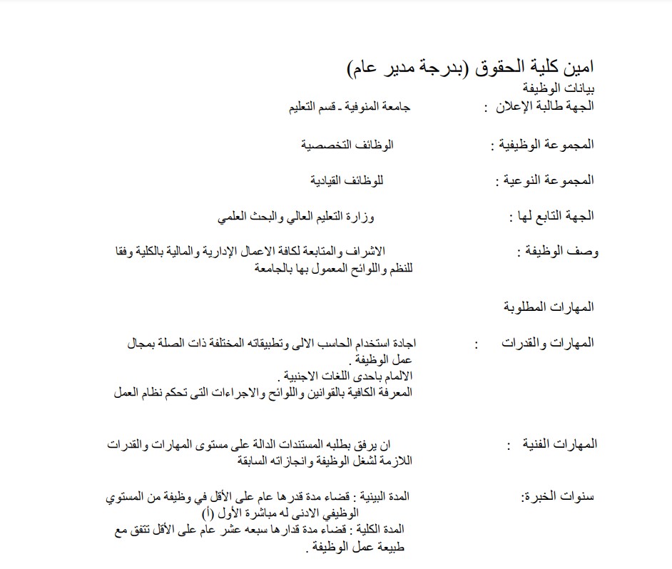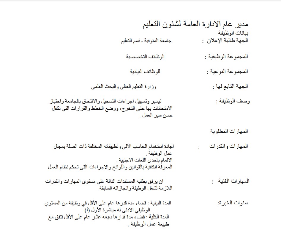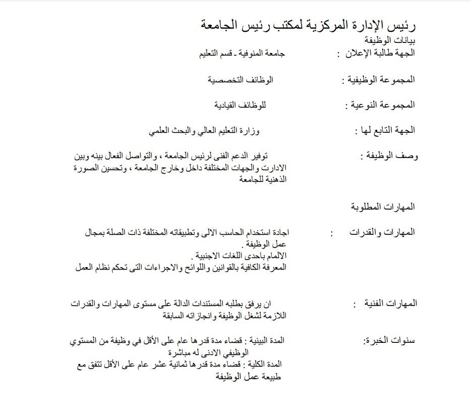المستندات المطلوبة لتقديم وظائف خالية قيادية في جامعة المنوفية