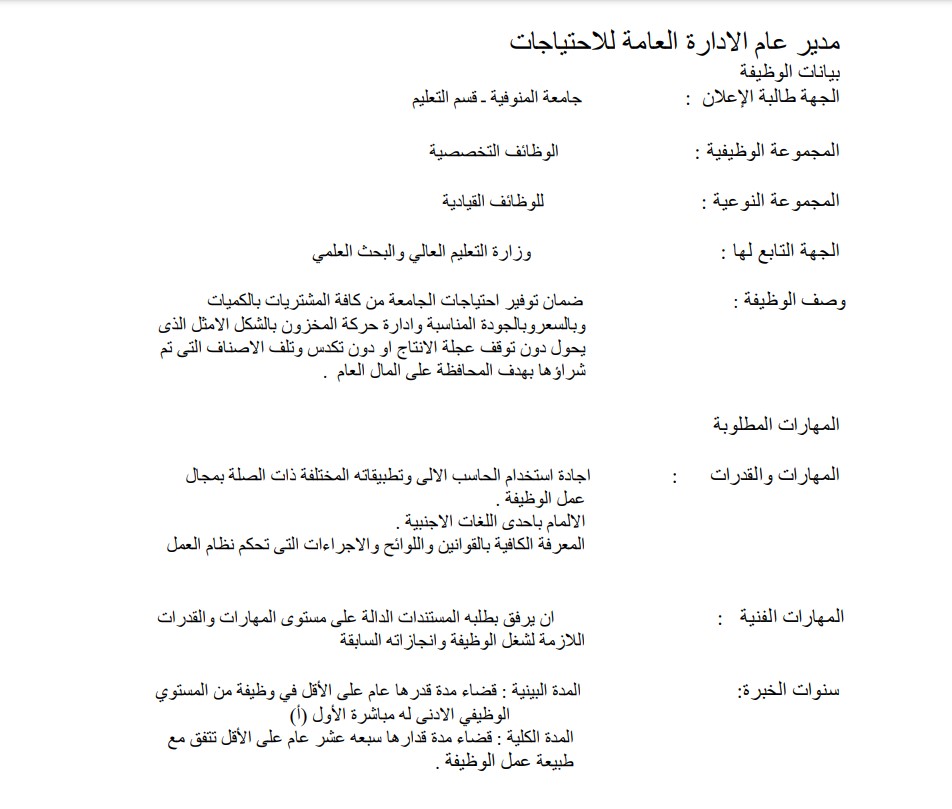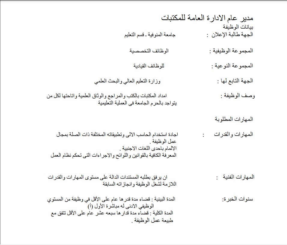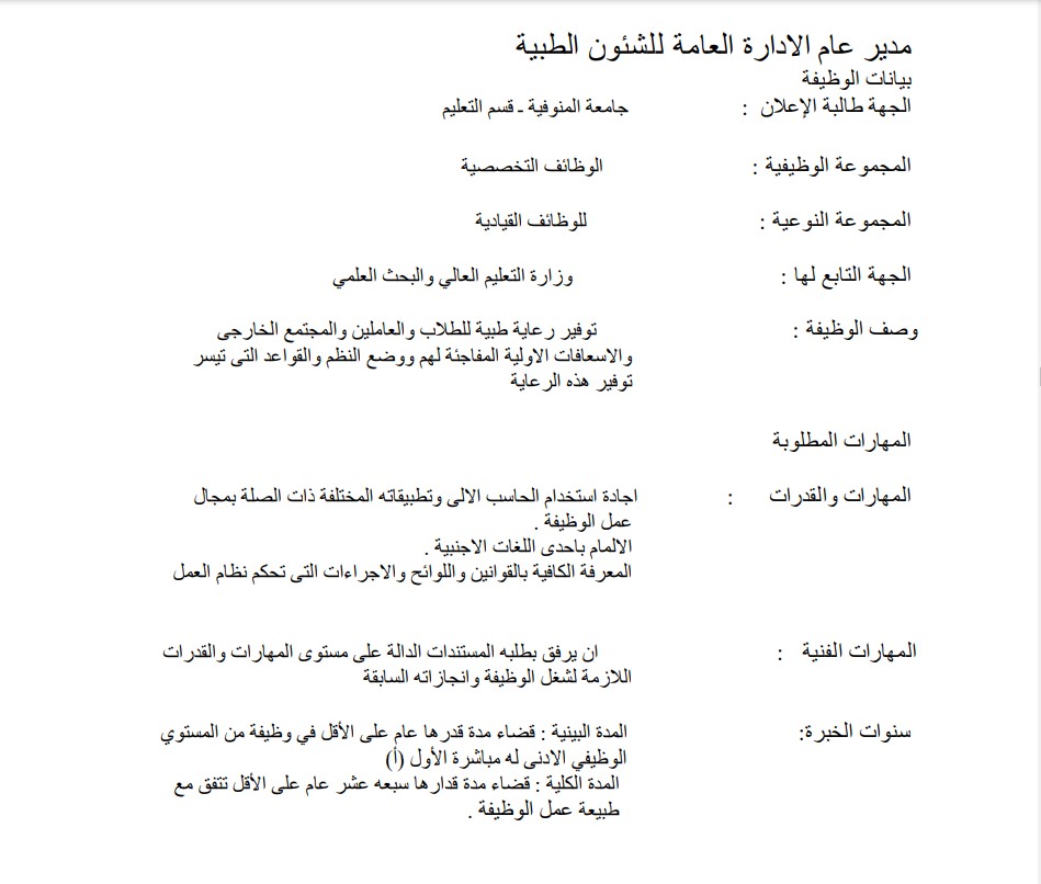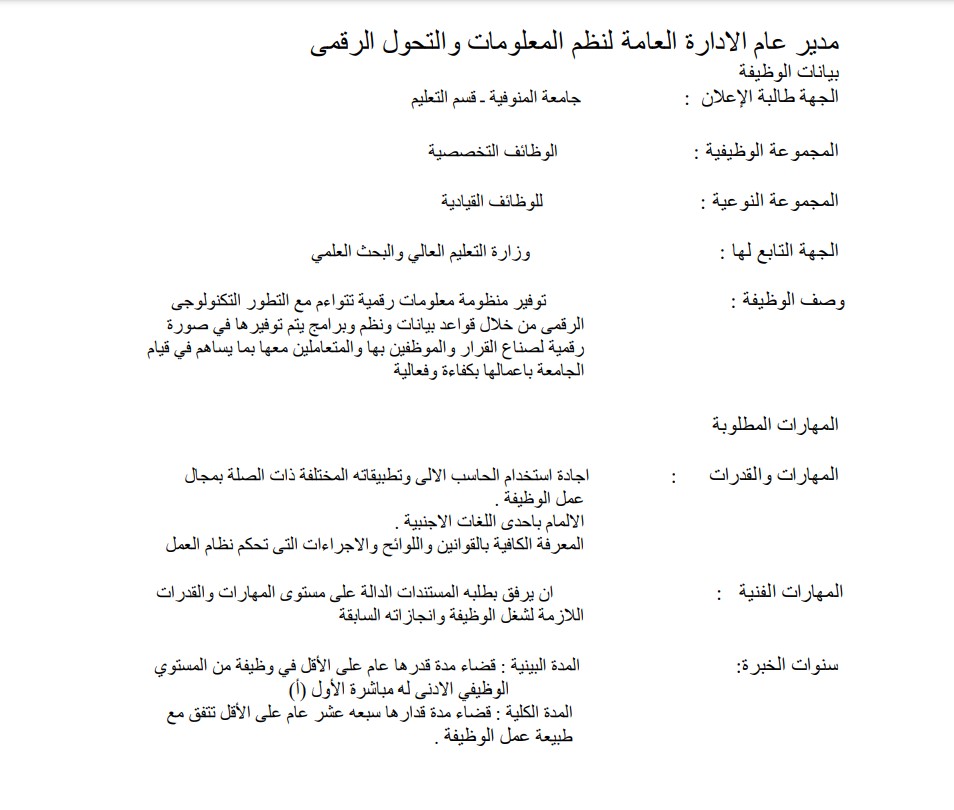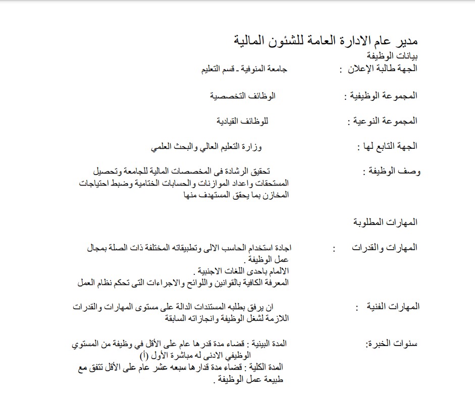 المستندات المطلوبة لتقديم وظائف خالية قيادية في جامعة المنوفية