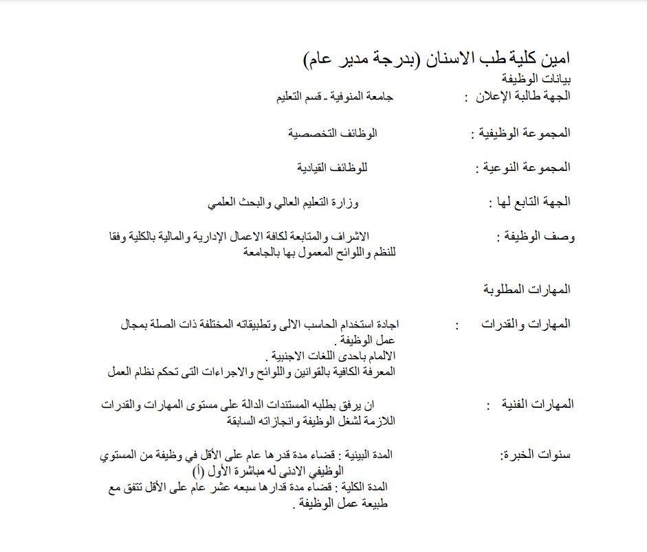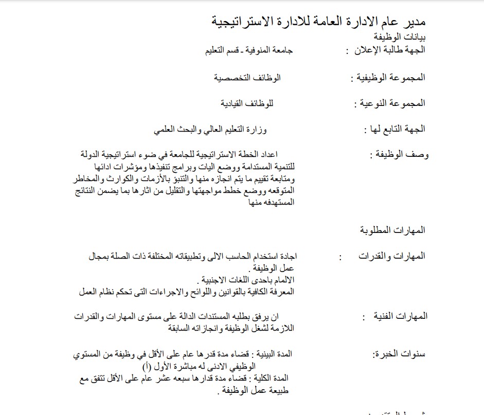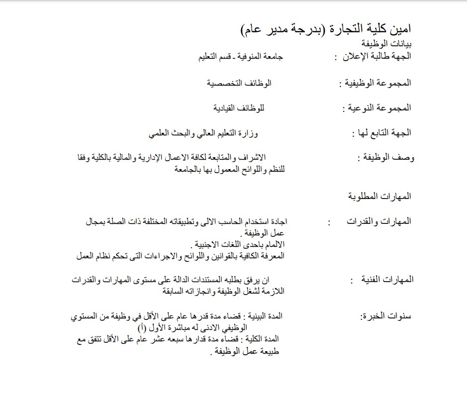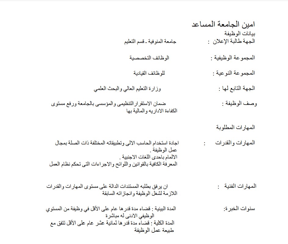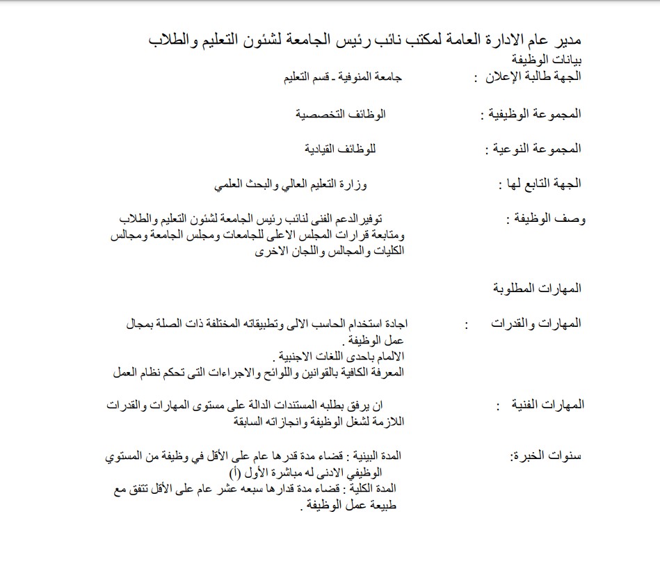 الوظائف القيادية الشاغرة في جامعة المنوفية