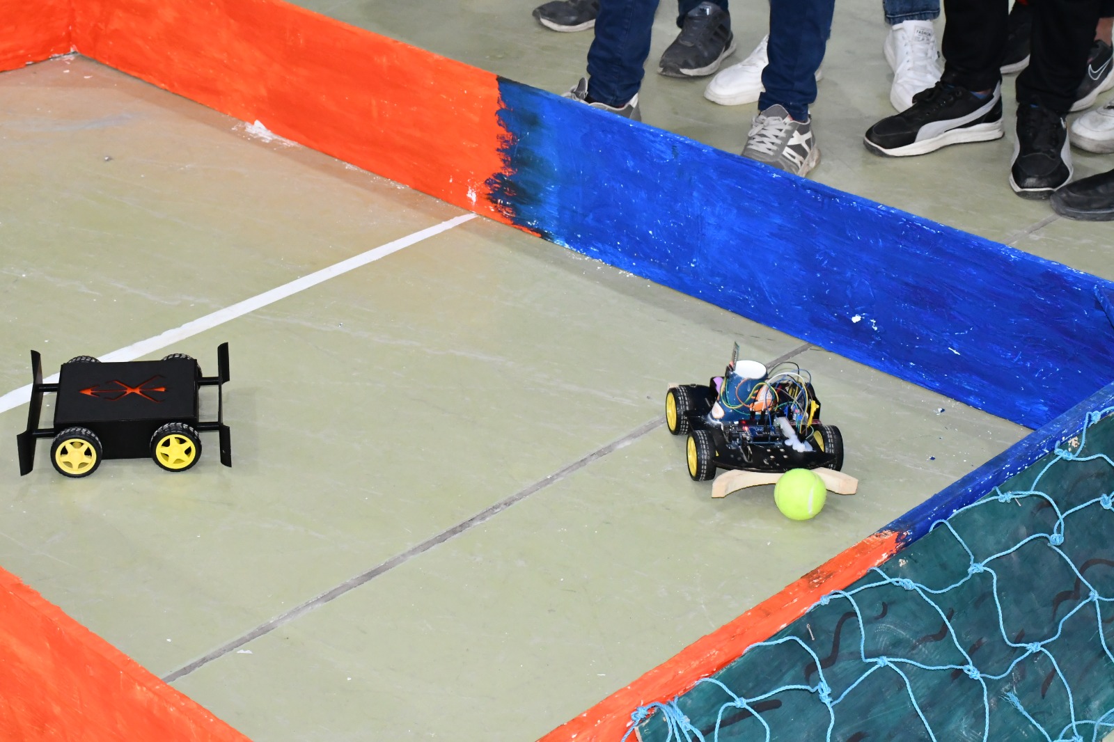 أشاد الدكتور ناصر مندور رئيس جامعة قناة السويس، بفكرة المسابقة التي قدمها طلاب الكلية المصرية الصينية للتكنولوجيا التطبيقية، والتي تتمثل في محاكاة لمسابقات عالمية لمباريات في كرة القدم بين الروبوتات، لافتًا إلى أن المباريات تقام بشكل ترفيهي علمي، حيث يقوم كل فريق بتصنيع الروبوت الخاص به وفقًا لمواصفات محددة في شروط المسابقة، حيث تكون جميع الروبوتات المشاركة بنفس المواصفات القياسية، كما يتم تحديد المواصفات الشكلية للروبوت، من حيث الطول والعرض والارتفاع والوزن، قوة البطاريات لضمان المنافسة العادلة.