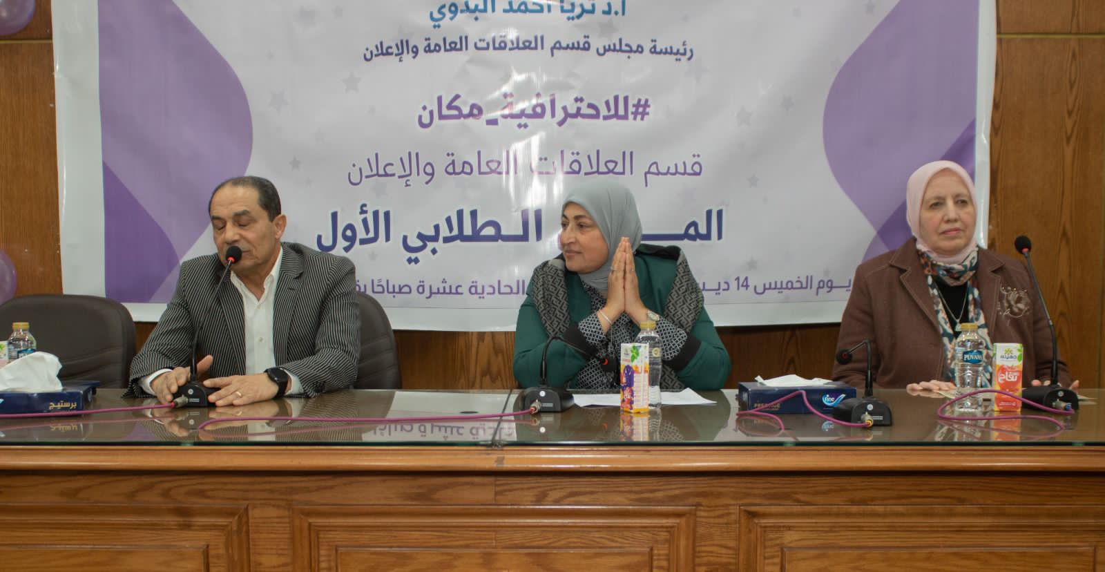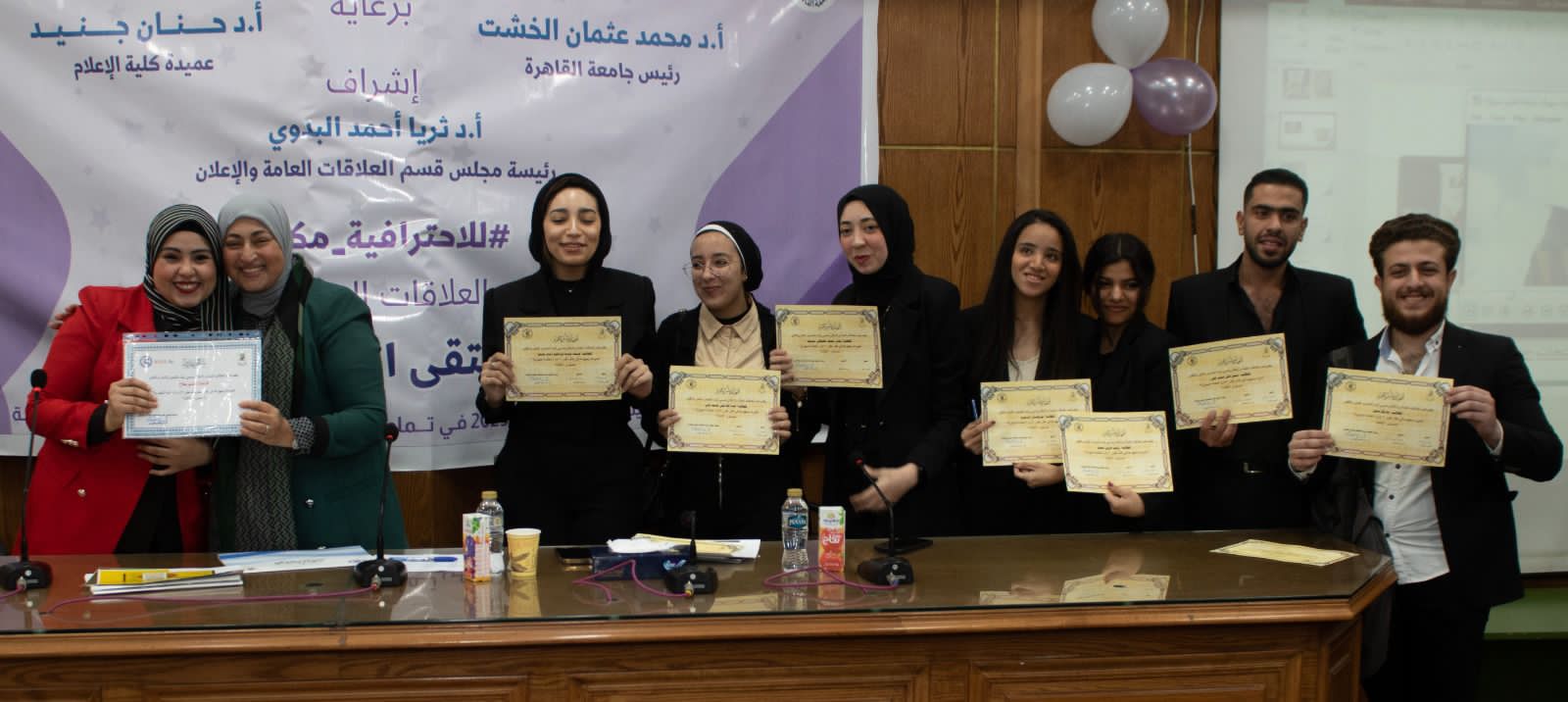 عقدت كلية الإعلام جامعة القاهرة الملتقى الطلابي الأول تحت عنوان "للاحترافية مكان قسم العلاقات العامة والإعلان"، والذي استهدف ربط العلوم النظرية بالتطبيق العملي ومنح فرص أوسع لطلاب المراحل المختلفة بالكلية والمنتمين لقسم العلاقات العامة لإبراز مهاراتهم في إعداد مشروعات متميزة تتبنى معالجات إعلامية وإعلانية للعديد من القضايا التي تهم المجتمع المصري والعربي، تحت رعاية الدكتور محمد عثمان الخشت رئيس جامعة القاهرة، والدكتورة حنان جنيد عميد كلية الإعلام جامعة القاهرة، وبمبادرة من قسم العلاقات العامة برئاسة الدكتورة ثريا أحمد البدوي.