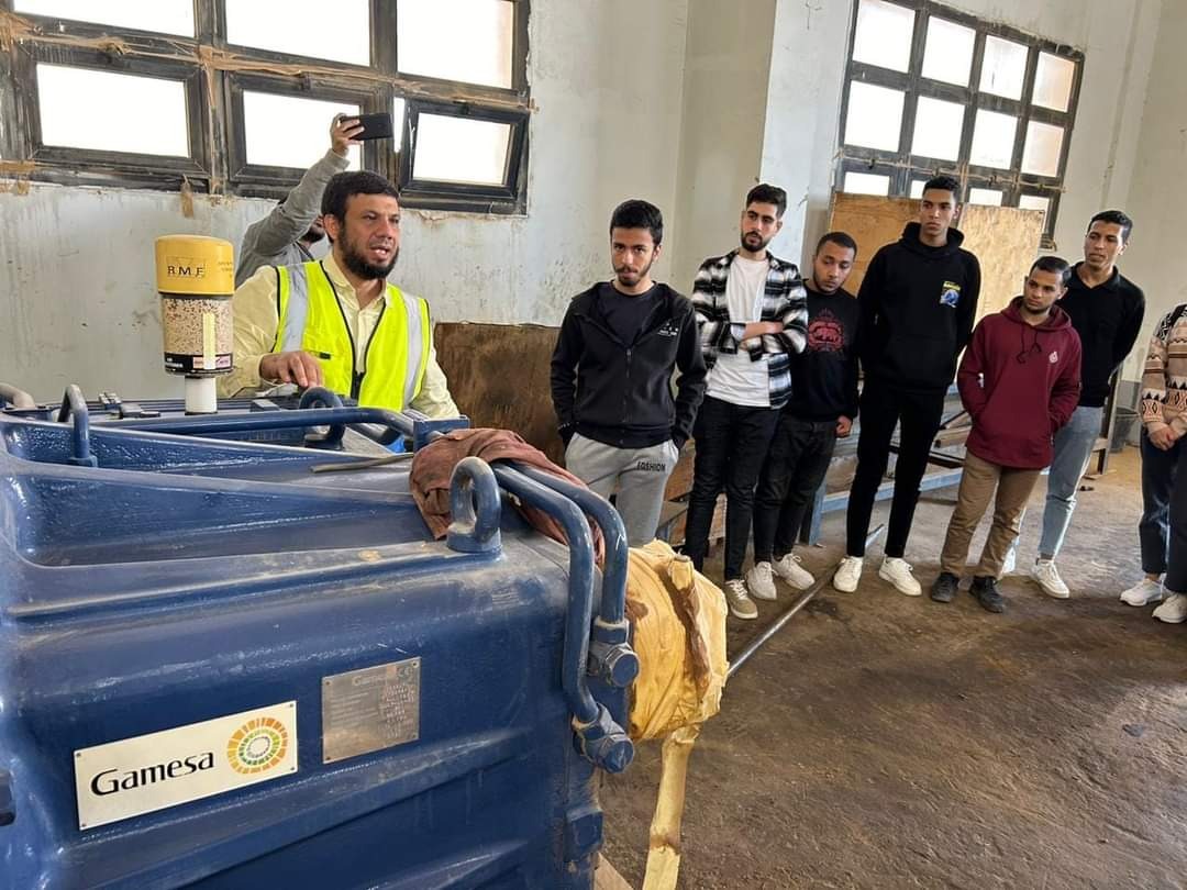 وقد قام طلاب كلية التكنولوجيا والتعليم جامعة حلوان، بزيارة غرفة الكنترول الخاصة بمزرعة الرياح والورش الخاصة بصيانة المولدات وتجميع التوربينات والمراوح، وكذلك زيارة مزرعة الرياح.