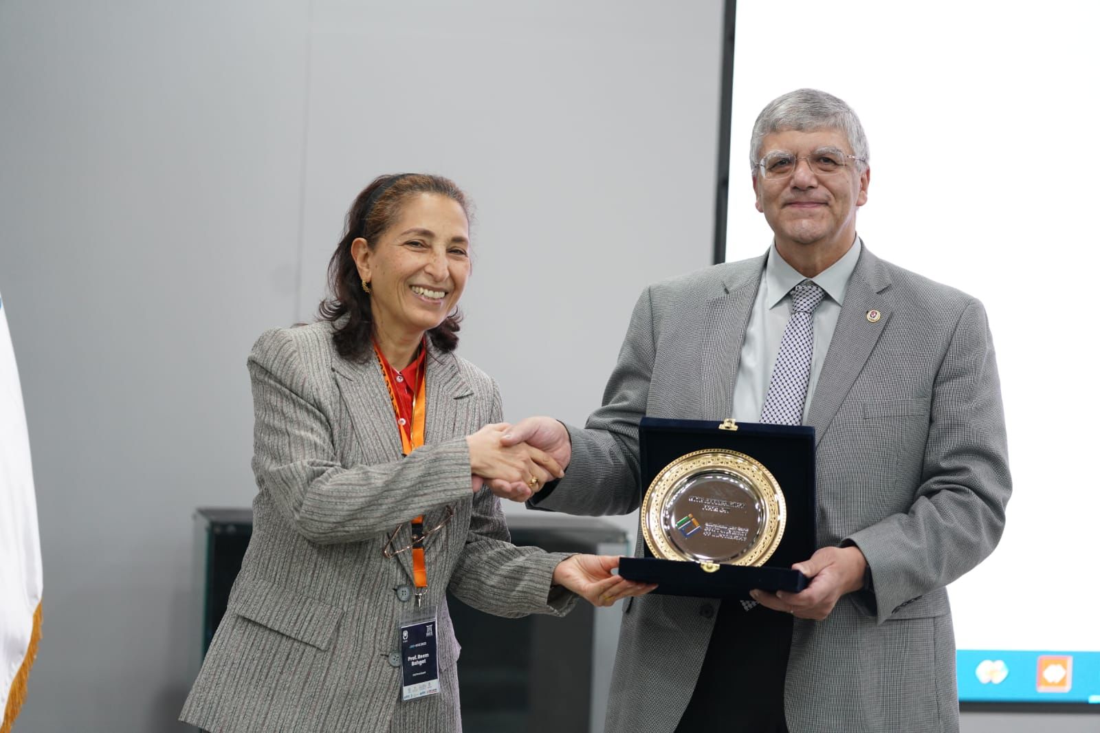 كما أهدت الدكتورة ريم بهجت رئيس جامعة مصر للمعلوماتية، درع جامعة مصر للمعلوماتية، للدكتور عمرو عدلي رئيس الجامعة المصرية اليابانية للعلوم والتكنولوجيا، تقديرًا لإسهاماته العلمية والبحثية والتعاون الوثيق وتفعيل الشراكة فيما بين الجامعتين.