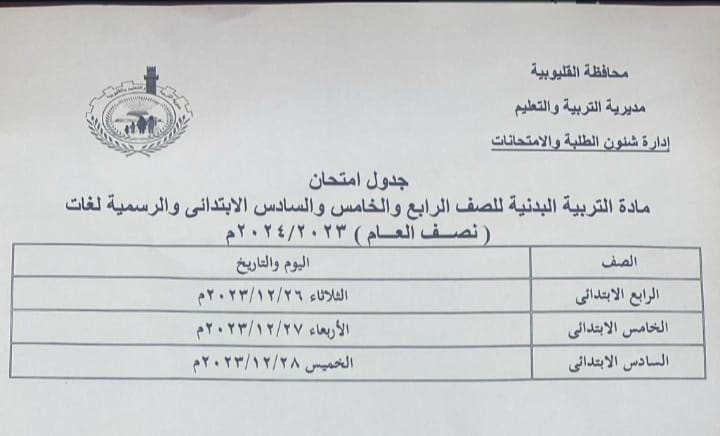 تضمنت جداول امتحانات الفصل الدراسي الأول للعام 2023/2024، بمحافظة القليوبية مخالفة لتعليمات وزارة التربية والتعليم والتعليم الفني، التي ضددت بضرورة مراعاة الاحتفالات والأعياد بجداول الامتحانات.