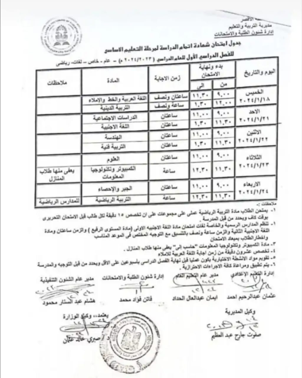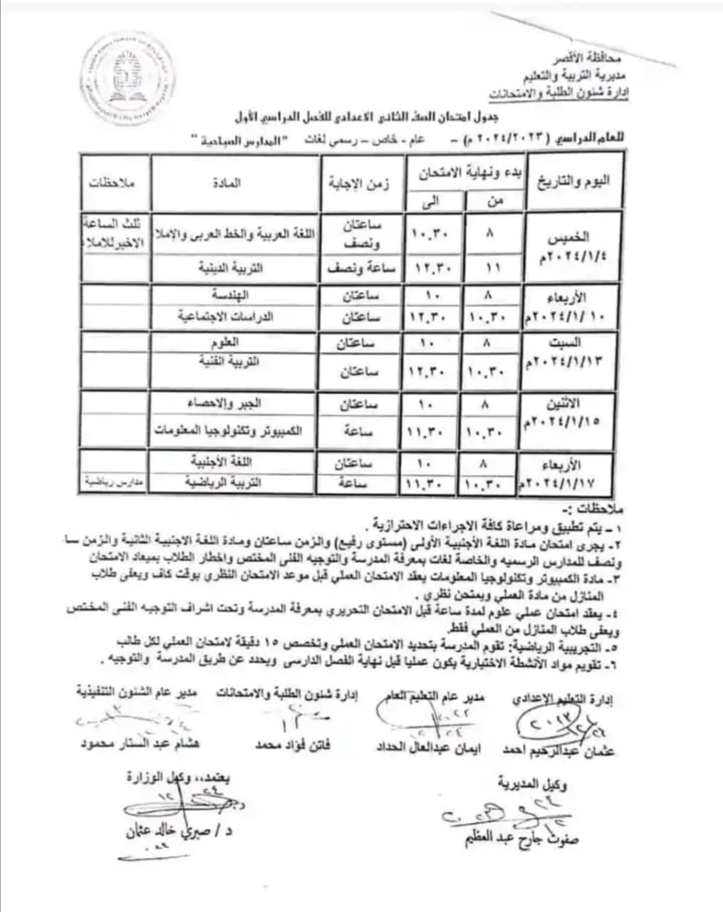 ننشر جداول امتحانات نصف العام في الأقصر 2024
