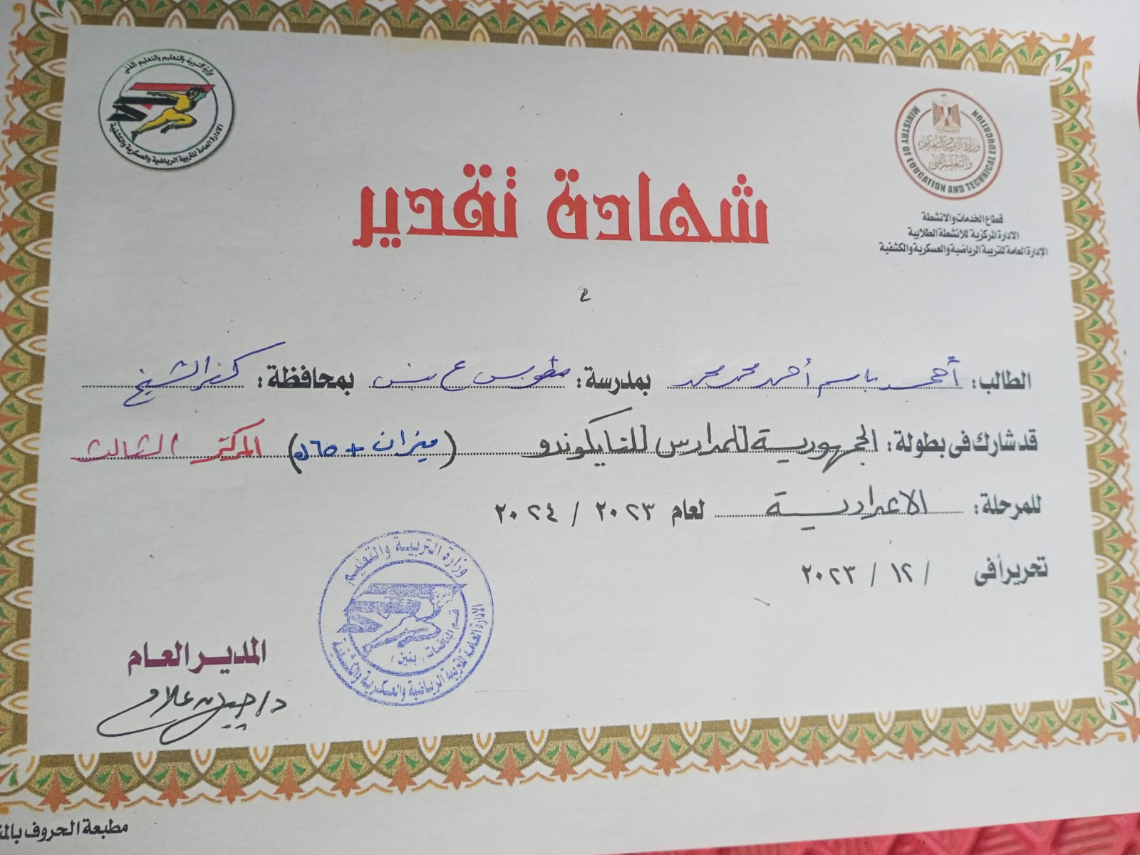 قال محمد عبدالله، وكيل وزارة التربية والتعليم بكفر الشيخ، لأول مره في تاريخ المديريه حصول 5 لاعبين علي المراكز الاولي وسط مباريات شرسه من دور 64 بتمثيل جميع مديريات الجمهوريه، فحصل محمود الشهاوي المواجهه بالادارة، ومدرب الطلاب علي شهاده التميز من الادارة العامة بالوزارة.