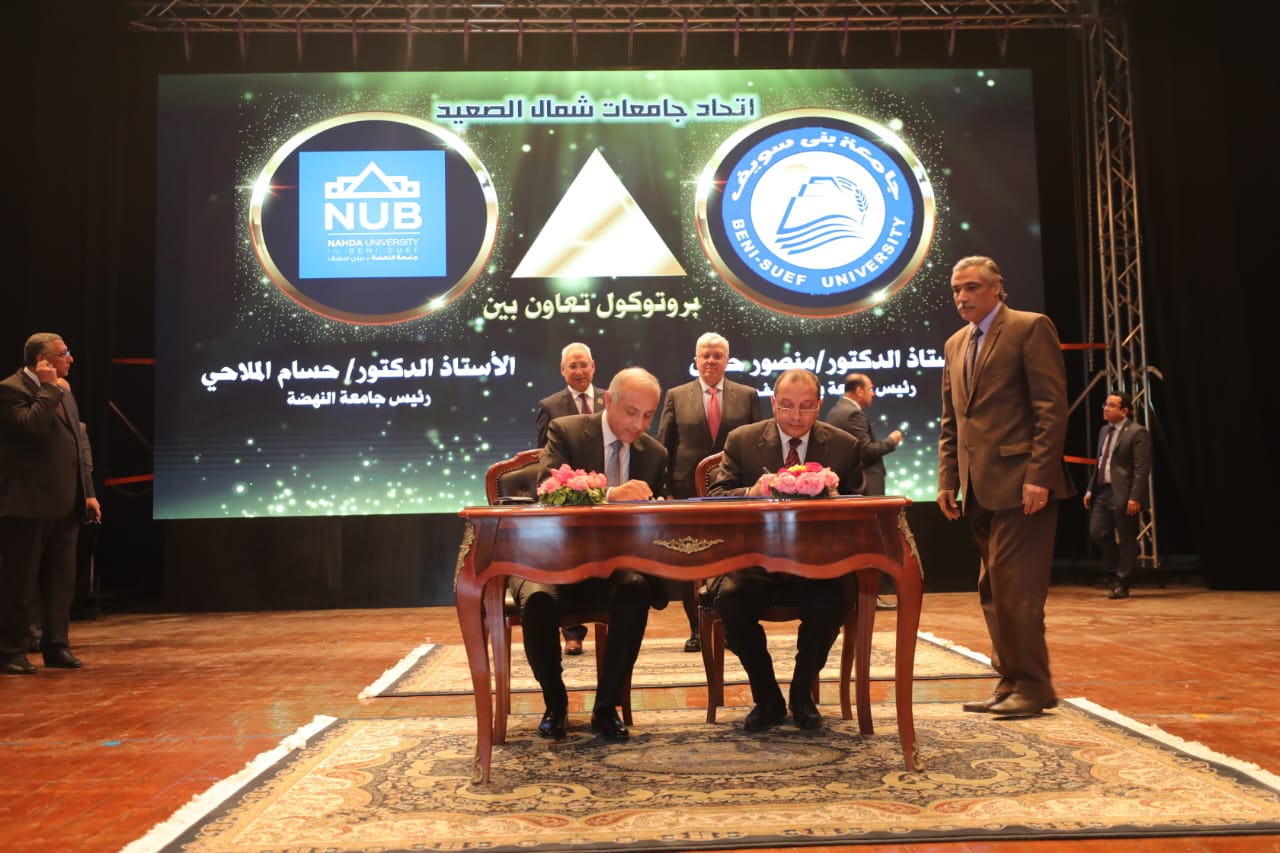 شهد الدكتور أيمن عاشور وزير التعليم العالي والبحث العلمي، توقيع عدة بروتوكولات تعاون بين جامعة المنيا وجامعة بني سويف وجامعة الفيوم والمؤسسات الأكاديمية والصناعية والخدمية المختلفة، كنواة لتحالف إقليم شمال الصعيد، بحضور اللواء أسامة القاضي محافظ المنيا، وللدكتور عصام فرحات رئيس جامعة المنيا.