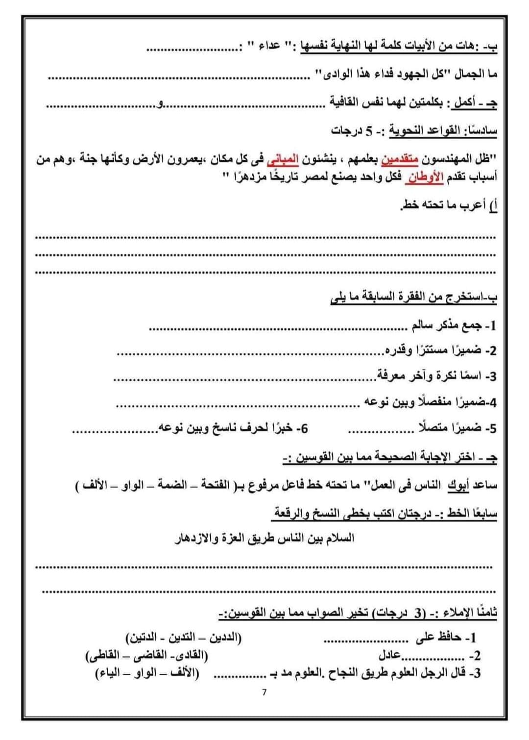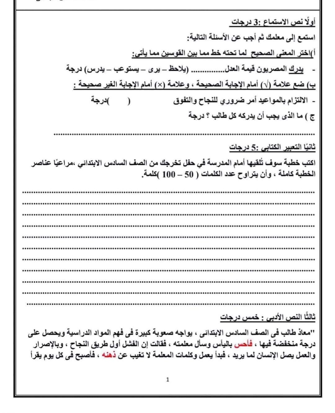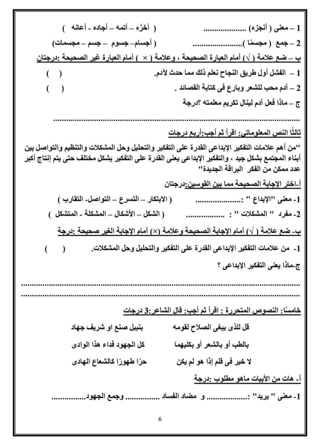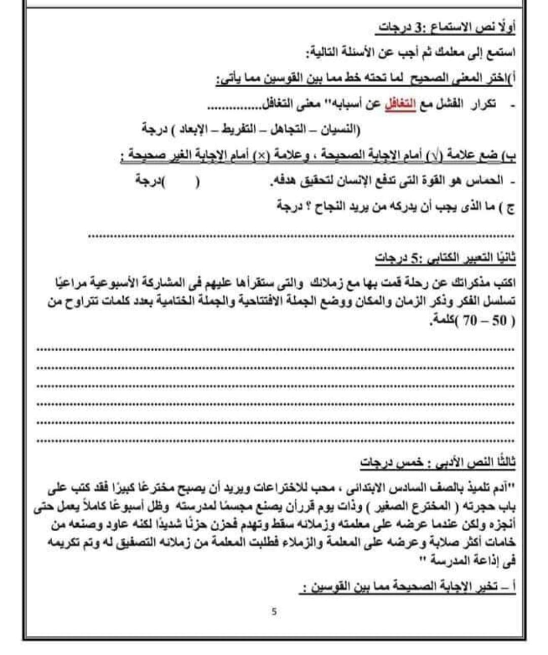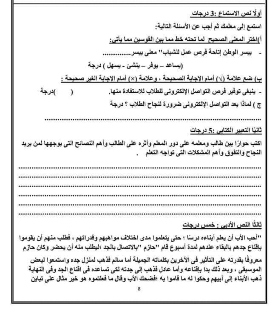 ويمكن لطلاب الصف السادس الابتدائي الإطلاع على النماذج الاسترشادية لمادة اللغة العربية من الصور التالية: