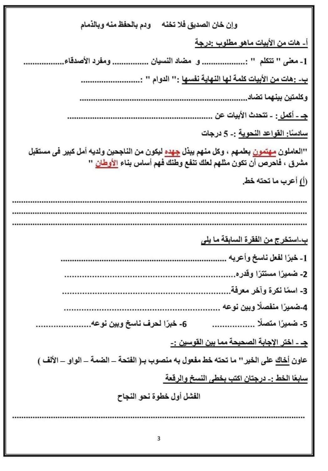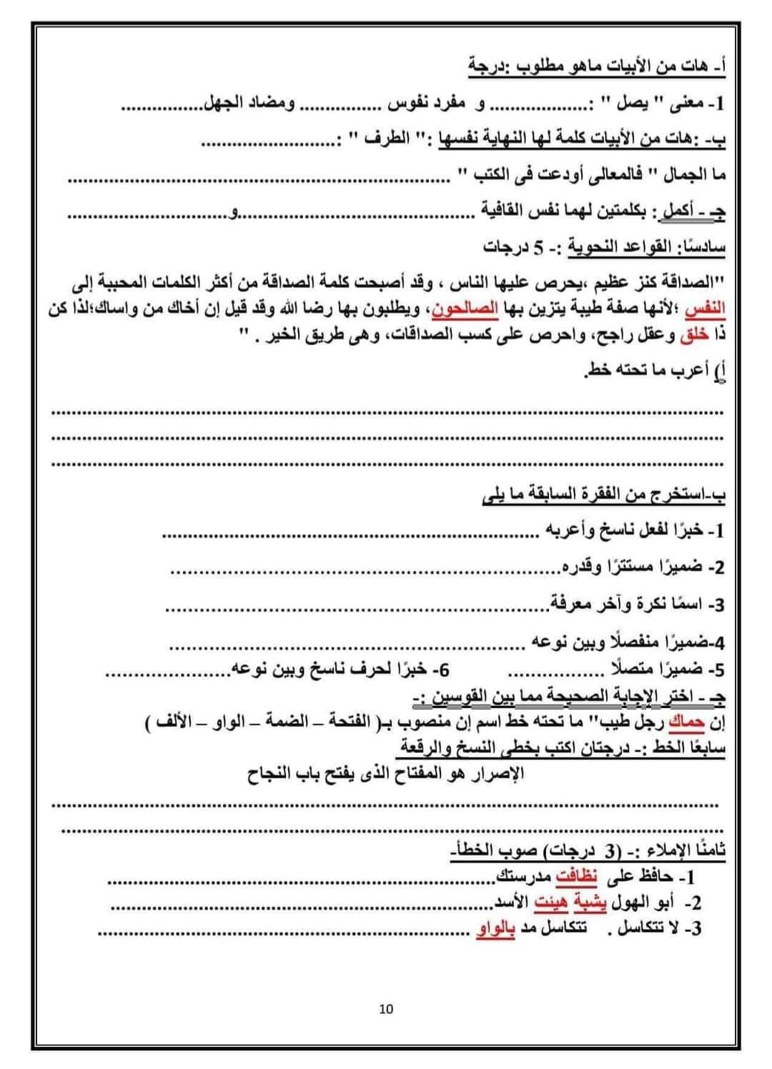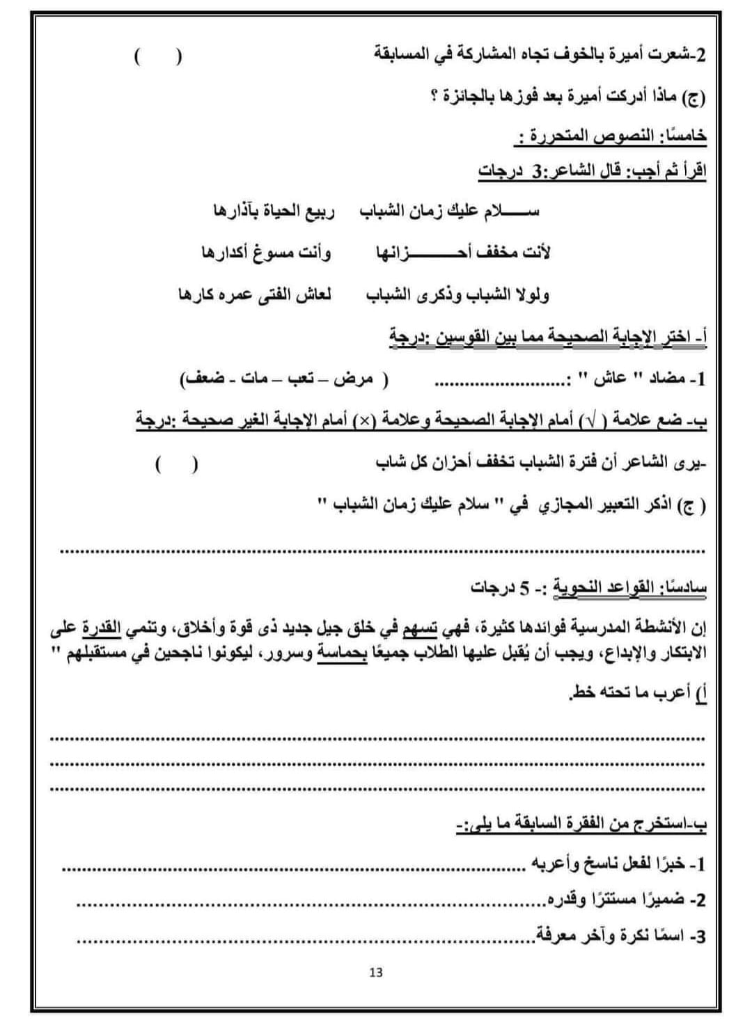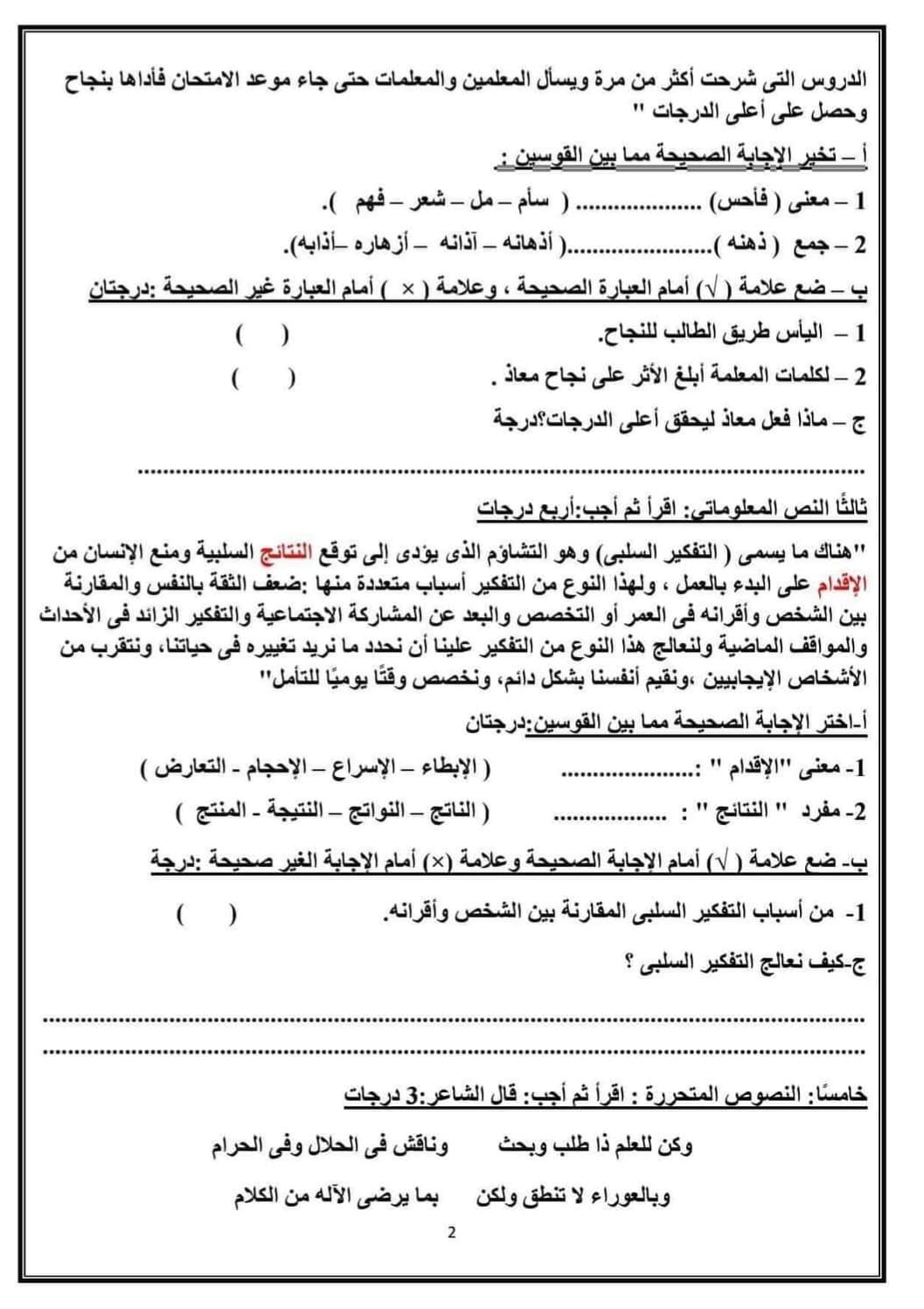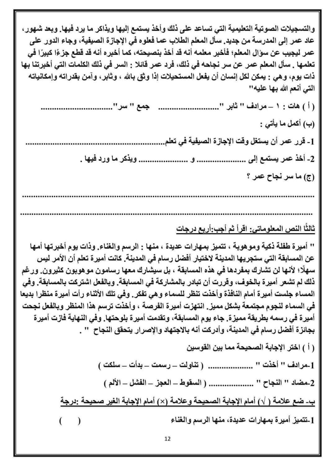 ويمكن لطلاب الصف السادس الابتدائي الإطلاع على النماذج الاسترشادية لمادة اللغة العربية من الصور التالية:
