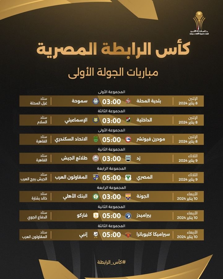 وجاءت مواعيد بطولة كأس الرابطة على النحو التالي: