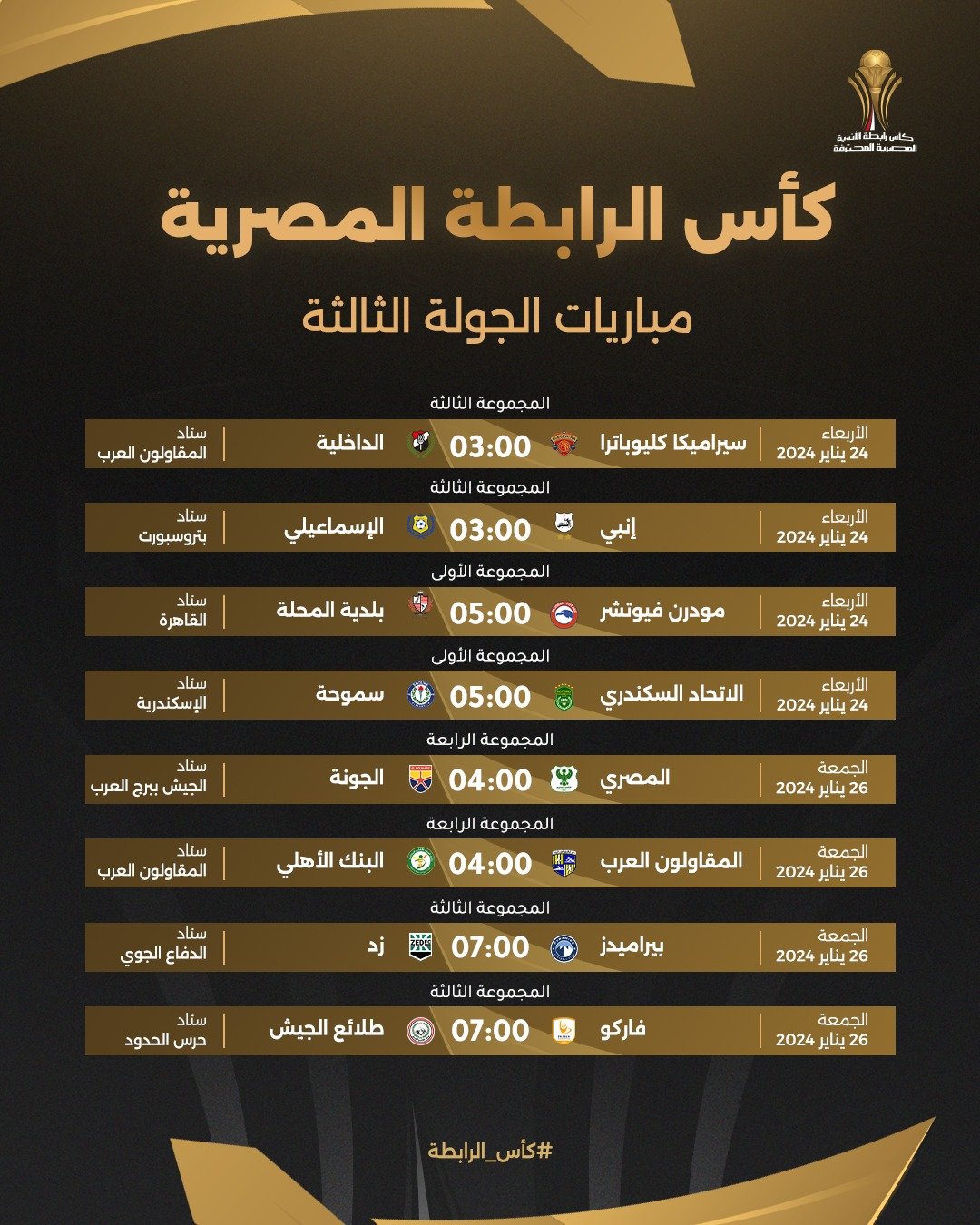 المجموعة الثالثة: سيراميكا كليوباترا - إنبي - الإسماعيلي - الداخلية.