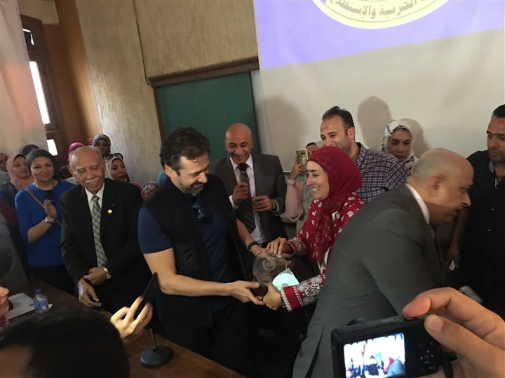 الفنون التطبيقية جامعة حلوان، وتبادل الصور التذكارية.