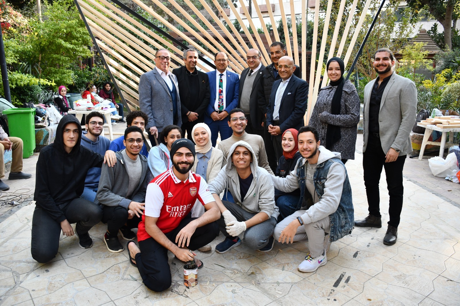 هذا وقد تم تنظيم المعرض برعاية ودعم وحضور من الدكتور السيد قنديل رئيس الجامعة، وإشراف الدكتور عمرو سامي عميد الكلية، والدكتورة أمنية يحيى وكيل الكلية لشئون خدمة المجتمع وتنمية البيئة، والدكتور ياسر السيد أستاذ مادة نظريات العمارة بقسم العمارة.