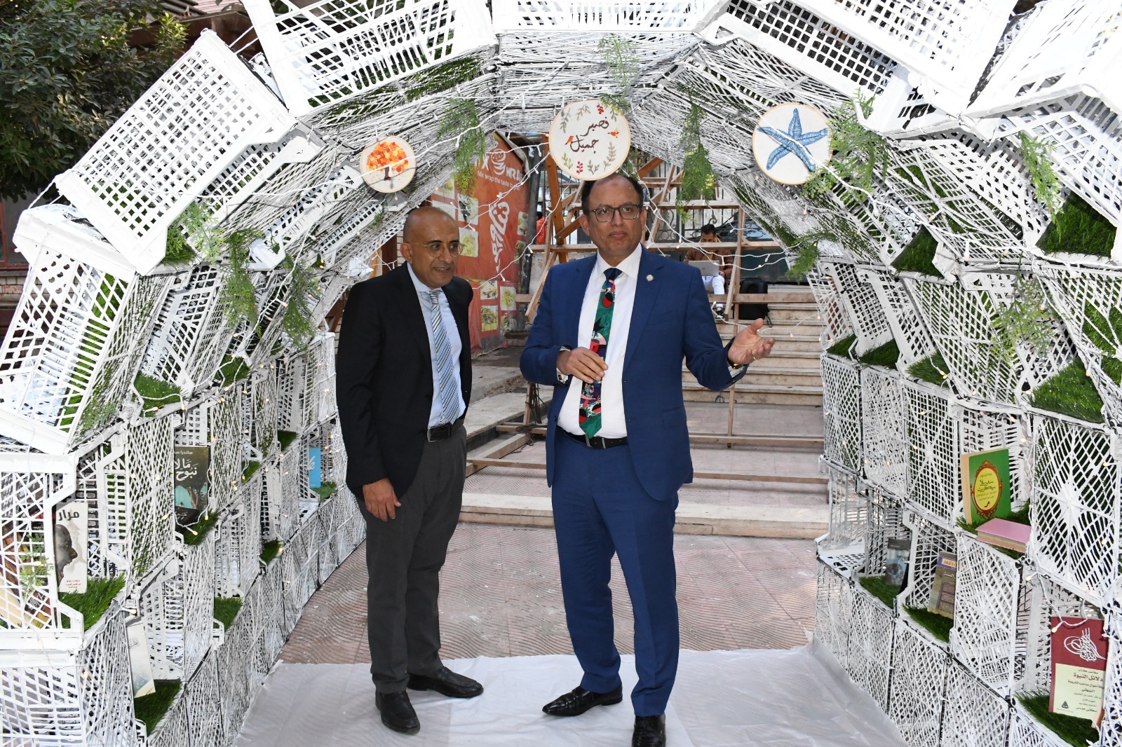 رئيس جامعة حلوان يفتتح معرض لمشروعات طلاب قسم العمارة بالفنون الجميلة