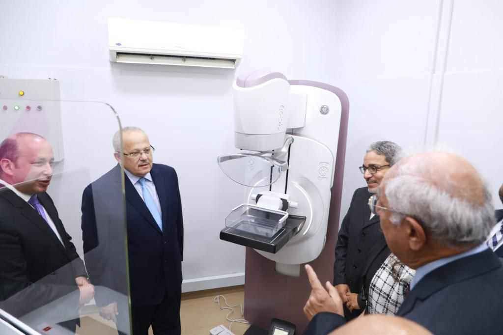 كما افتتح رئيس جامعة القاهرة، تجديد وحدة فحص المرأة بقسم الأشعة التشخيصية والتداخلية، وتضمنت شراء جهاز فحص الثدي بوحدة فحص صحة المرأة بقسم الأشعة التشخيصية والتداخلية بتكلفة بلغت حوالي 326 ألف دولار، لتقديم الخدمات المتعلقة بفحص جميع مرضي أورام الثدي باستخدام جهاز السونار أو بالأشعة العادية (ماموجرافي)، وأخذ جميع العينات الخاصة بمرضي أورام الثدي وإرسالها للمعمل الذي تم إنشائه لهذا الغرض بالمستشفيات، مشيرًا إلى أن الوحدة تقدم خدماتها لأكثر من 10950 حالة سنويًا سواء ممن تم حجزهم داخل المستشفيات أو من مرضي العيادات الخارجية التابعين لمبادرة فخامة رئيس الجمهورية لصحة المرأة.
