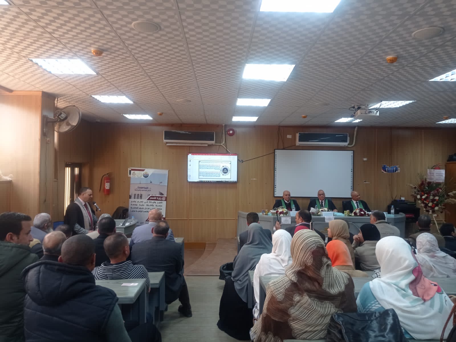 وذلك بحضور وكيل وزارة المالية بالمنوفية، وعدد كبير من ممثلي وزارة المالية، والدكتور عماد زكريا، أمين عام الجامعة، ولفيف من العاملين بجامعة مدينة السادات، ولفيف من الباحثين وذلك لأهمية موضوع المناقشة.