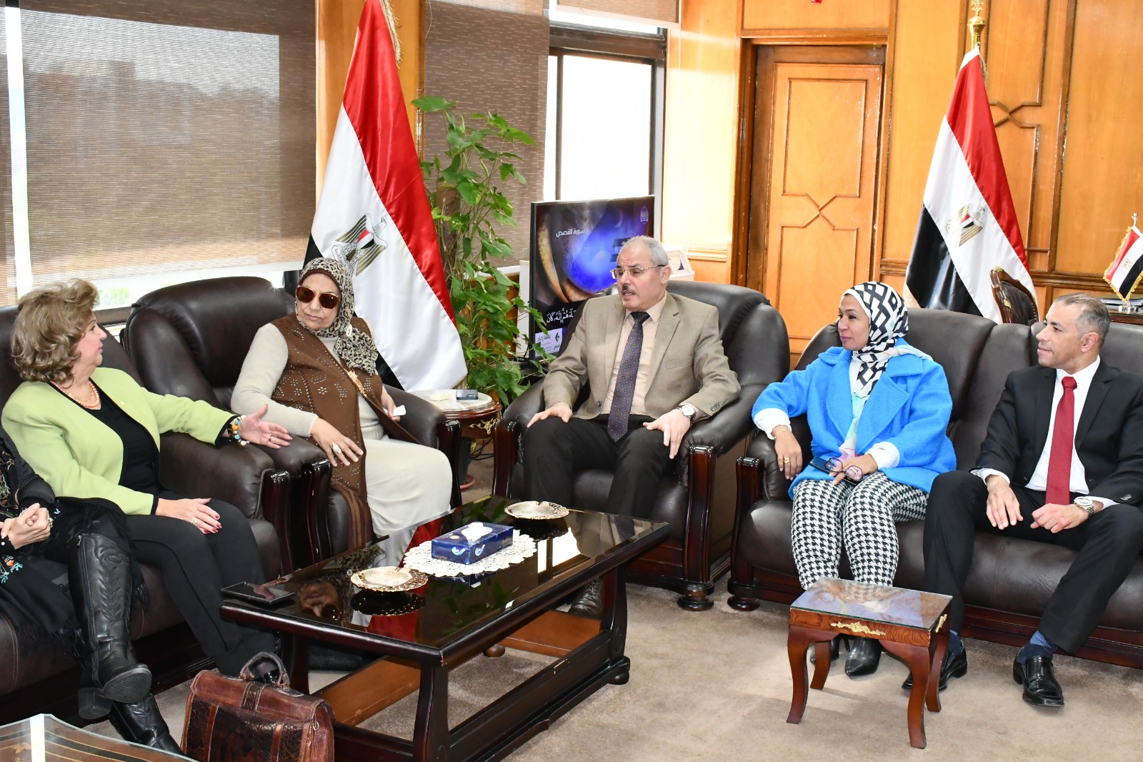 رئيس جامعة قناة السويس يستقبل وفد نادي ليونز المريلاند