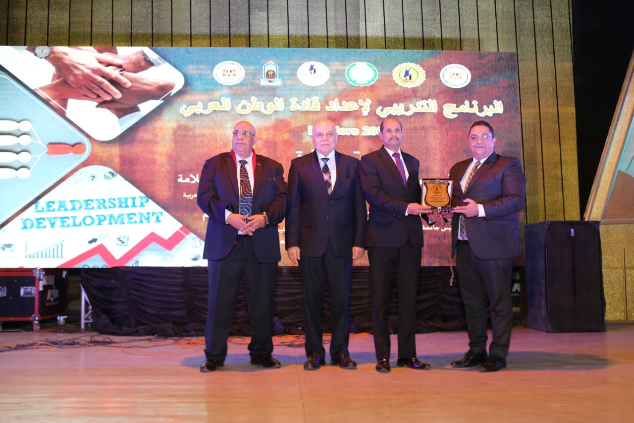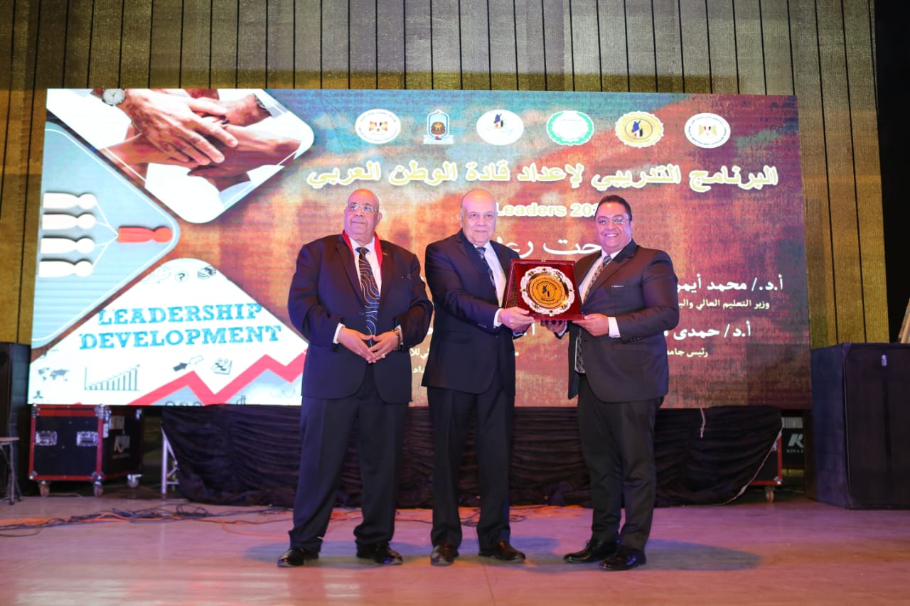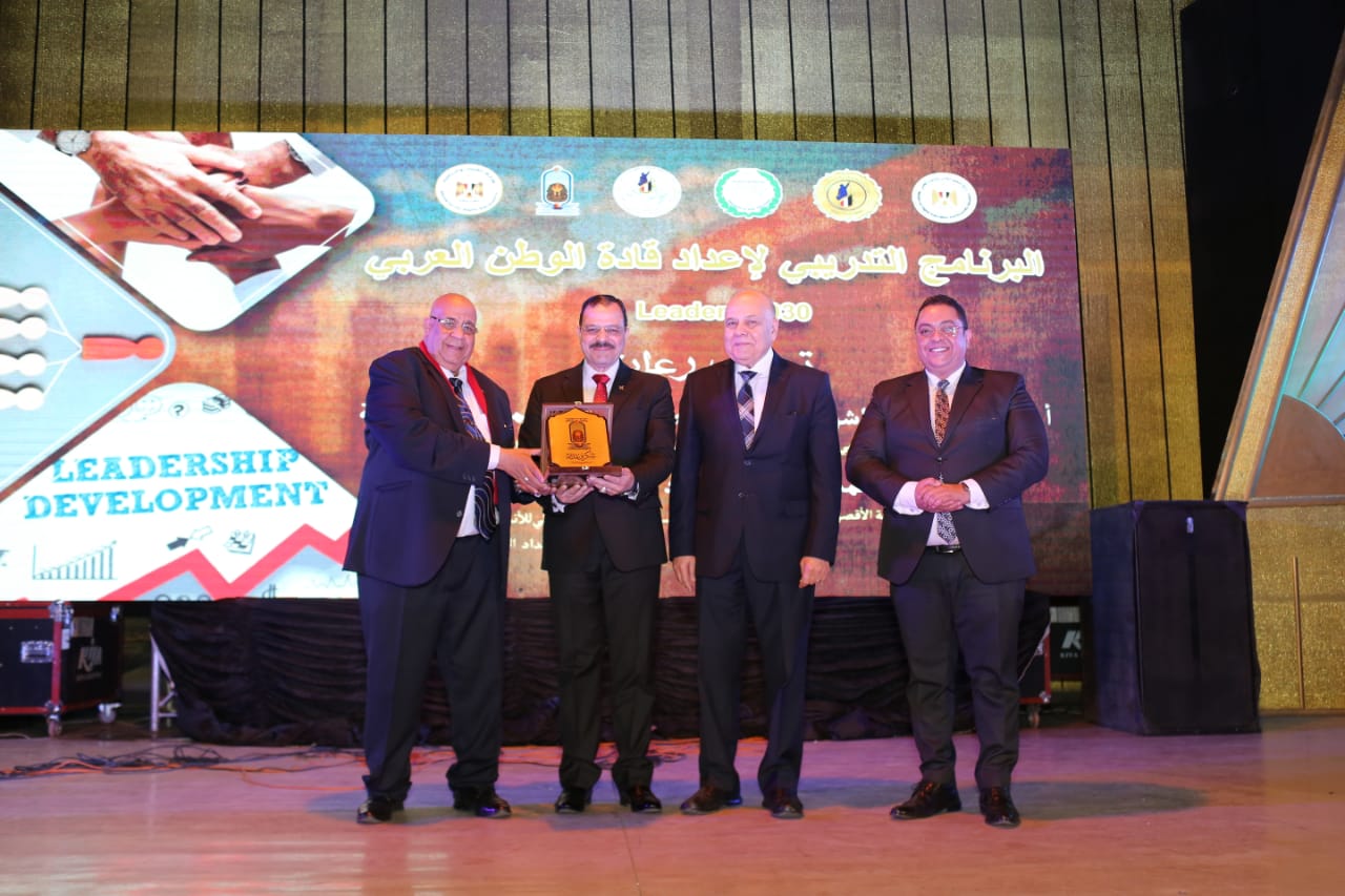 وأكد خلال كلمته أننا بصدد برنامج تدريبي جديد بأفكار جديدة وأحلام تراودنا من أجل التطوير والبناء وتعزيز قوميتنا وعلاقاتنا الراسخة على مر التاريخ والزمان، موضحا أن هذا البرنامج التدريبي يهدف إلى إعداد القيادات الشابة في الوطن العربي، ويستهدف طلاب الجامعات العربية والمصرية بهدف صقل مواهبهم القيادية لكى يكونوا سفراء لبلدانهم وقادة المستقبل، وتمكين الشباب من تحقيق التنمية المستدامة في بلدانهم ونشر ثقافة القيادة الإيجابية، وبعث رسالة للعالم أجمع إن مصر تفتح أبوابها لاستقبال الشباب العربي من أجل رفع قدراتهم وخبراتهم، وذلك تأكيدا على دورها الريادي في الوطن العربي.