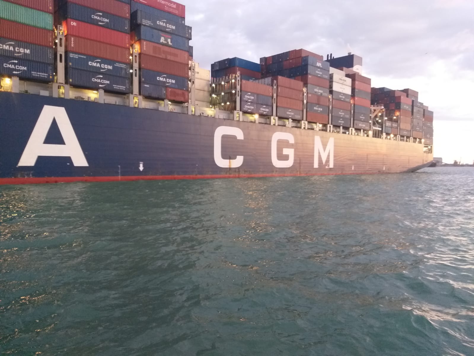 ويصل طول السفينة T.ROOSEVELT والتي ترفع العلم المالطي إلى 365.9 م بعرض 48.2 م وبغاطس يصل إلى حوالي 16م بحمولة كلية 142 ألف طن بطاقة 14،440 حاوية مكافئة وجاري حاليا العمل على تفريغ حمولتها