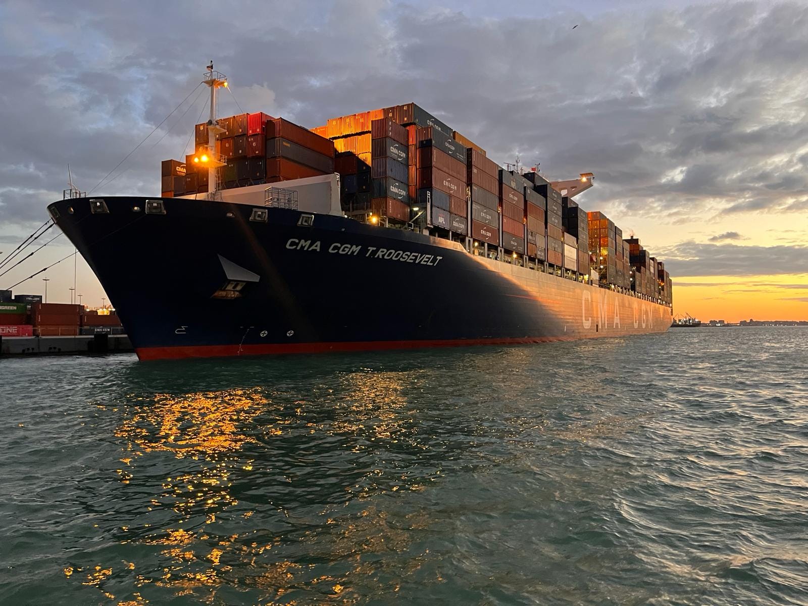 استقبلت الهيئة العامة لميناء الإسكندرية، مساء السبت الموافق 3 فبراير 2024، سفينة الحاويات العملاقة T.ROOSEVELT توكيل CMA CGM والتي يتم تراكيها لأول مرة بأرصفة ميناء الإسكندرية حيث تم استقبالها على رصيف محطة تحيا مصر متعددة الأغراض والتي تم افتتاحها بتشريف الرئيس عبدالفتاح السيسي رئيس الجمهورية في يونيو 2023.