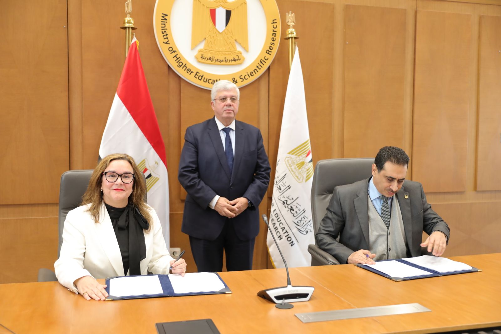 ومن جانبه، قدم الدكتور محمود السعيد نائب رئيس جامعة القاهرة للدراسات العليا والبحوث، الشكر للوزير لاستضافة ورعاية توقيع هذا الاتفاق، مؤكدًا أنه يأتي تماشيًا مع تطبيق الجامعة لأهداف الاستراتيجية الوطنية للتعليم العالي والبحث العلمي التي أطلقتها الوزارة في مارس 2023، وتحقيق مبدأ المرجعية الدولية، كما يأتي في ضوء حرص جامعة القاهرة على تعميق دورها الدولي ومواصلة عقد شراكات ودرجات علمية مزدوجة للتدريس بالفرع الدولي للجامعة.