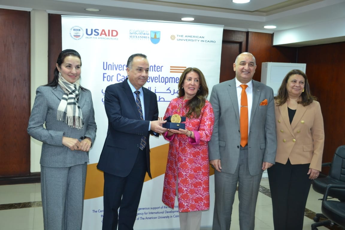 كما تفقدت السفيرة المركز الجامعي للتطوير المهني بكلية الأعمال جامعة الإسكندرية، واستمعت لقصص النجاح التي حققها الطلاب الخريجين من خلال المركز.