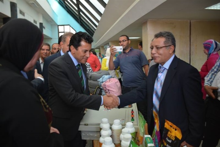 افتتح الدكتور أشرف صبحى، وزير الشباب والرياضة، يرافقه اللواء جمال نور الدين محافظ أسيوط، والدكتور طارق الجمال رئيس جامعة أسيوط، والدكتورة نيفين جامع المدير التنفيذى لجهاز المشروعات المتوسطة والصغيرة والمتناهية الصغر، معرض منتجات الشباب والجمعيات بأسيوط، المقام على هامش ملتقى الحوار الشبابى حول الشباب والتنمية بجامعة أسيوط.