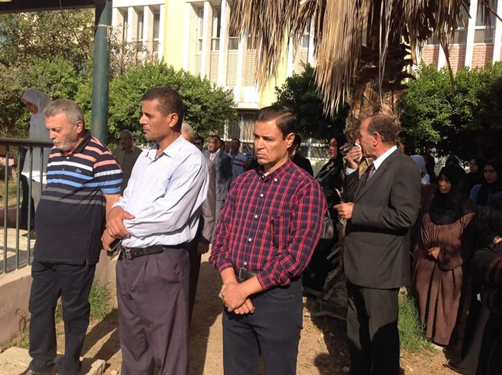 وخلال الوقفة تم إلقاء كلمات وداع للمدرس الراحل ، و عرض