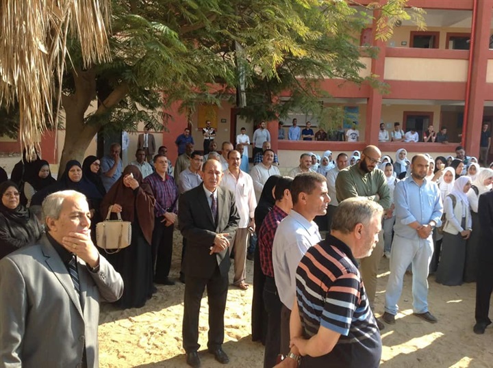 الامور وحشد من طالبات المدرسة ، حزنا على روح المعلم ، والذى لقى ربه منذ يومين ،