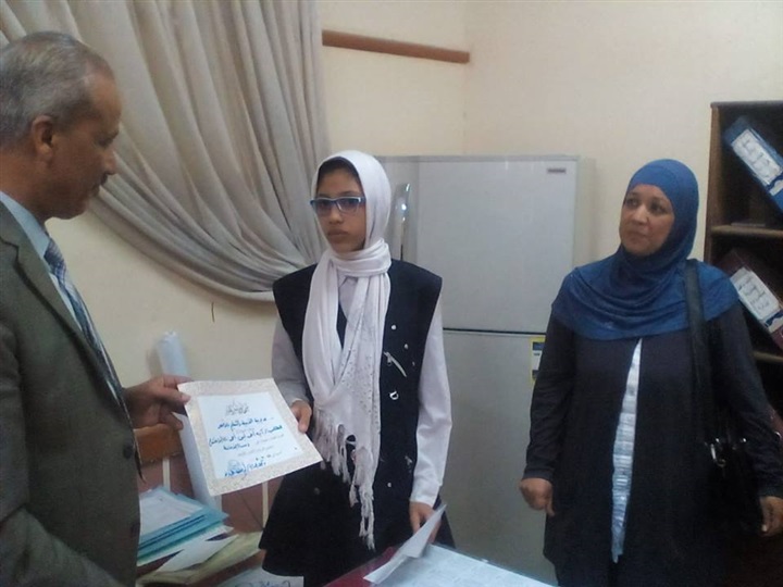 بمحافظة الأقصر بتكريم الطالبة اية سعدى امين طالبة بمدرسة السيدة عائشة بالأقصر وذلك
