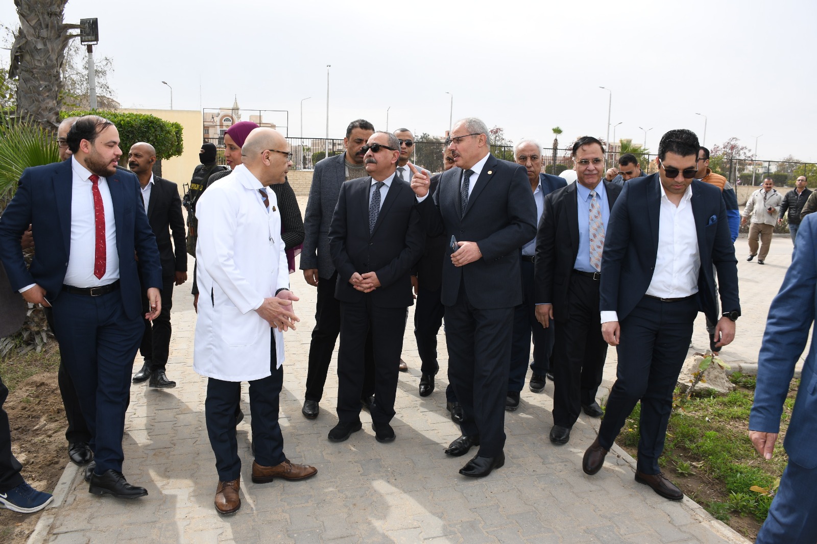 هذا وكان في استقبالهما كل من الدكتور أحمد السقا عميد كلية الطب ورئيس مجلس إدارة المستشفيات الجامعية، والدكتور أحمد أنور عبدالغني المدير التنفيذي للمستشفيات الجامعية، والدكتورة مروة عرابي نائب المدير التنفيذي للمستشفيات الجامعية، والدكتور محمود أحمد حسن مدير المستشفى الجامعي، والقيادات الطبية والإدارية والأمنية بمستشفيات جامعة قناة السويس.