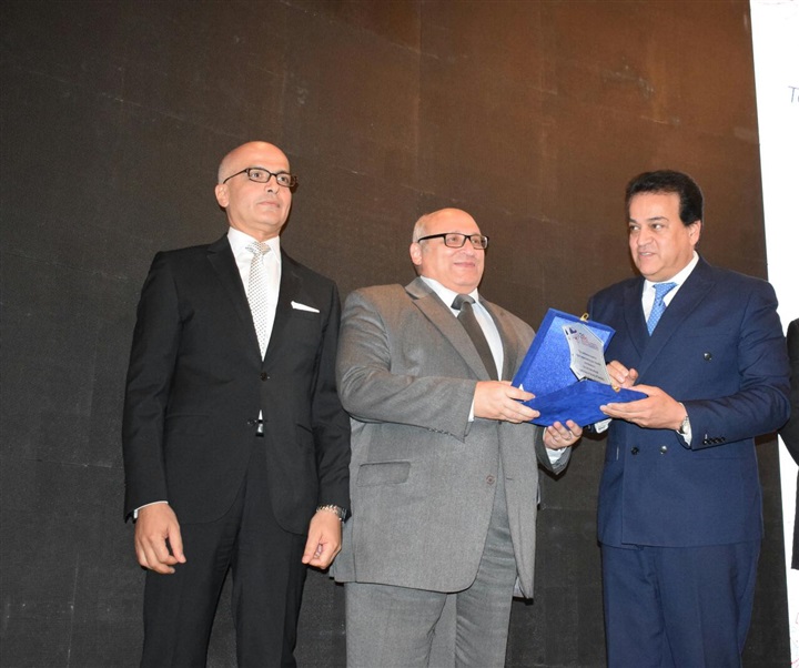 ورئيس شرف المؤتمر و سمير عبد الناصر أمين عام الجامعة و الدكتور هبه شاهين مدير المركز الإعلامي للجامعة
