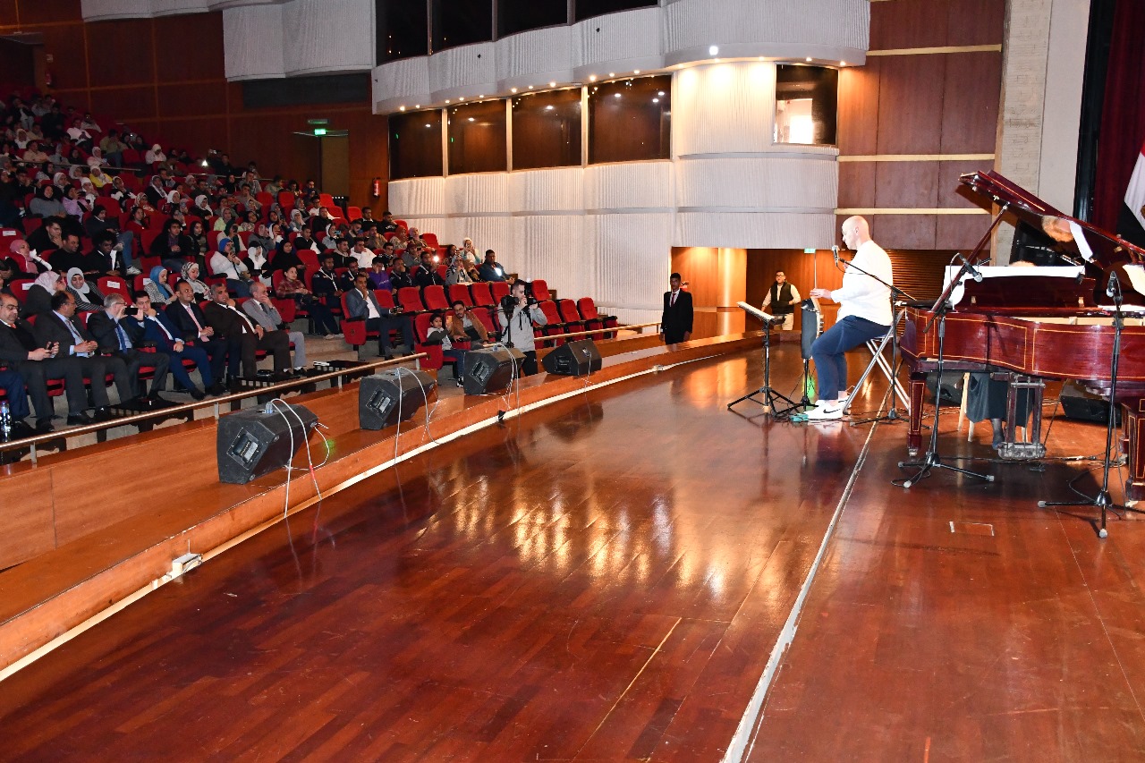 وقد حضر الحفل عدد كبير من عمداء الكليات وأساتذة جامعة حلوان وطلابها، وقدّم الثنائي مجموعة متنوعة من المقطوعات الموسيقية والتي أبهرت الحضور بروعتها وإتقان أدائها.