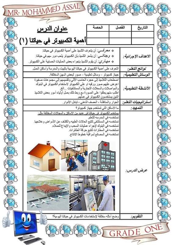 ننشر تحضير مادة الحاسب الآلي للمرحلة الابتدائية