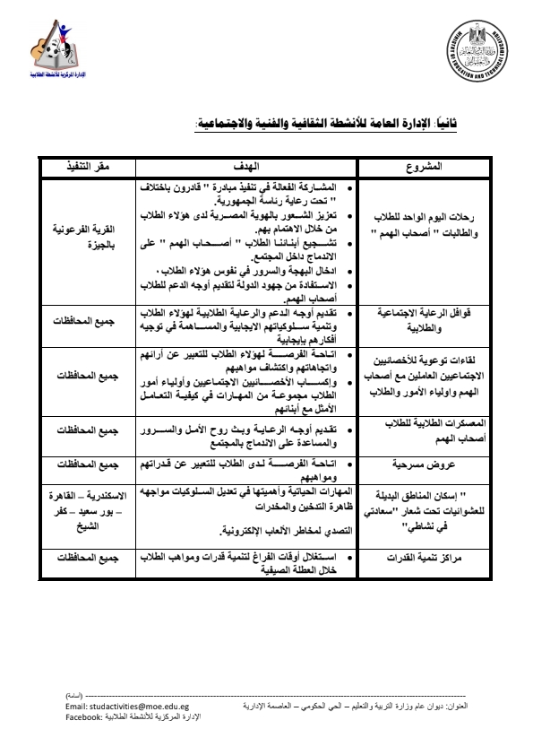 - تنفيذ الأنشطة الرياضية المختلفة بالتعاون مع وزارة الشباب والرياضة.
