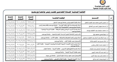 وشملت القائمة ١١ مرشحا لرئاسة جامعة بورسعيد وجاءت أسماؤهم كالتالي:
