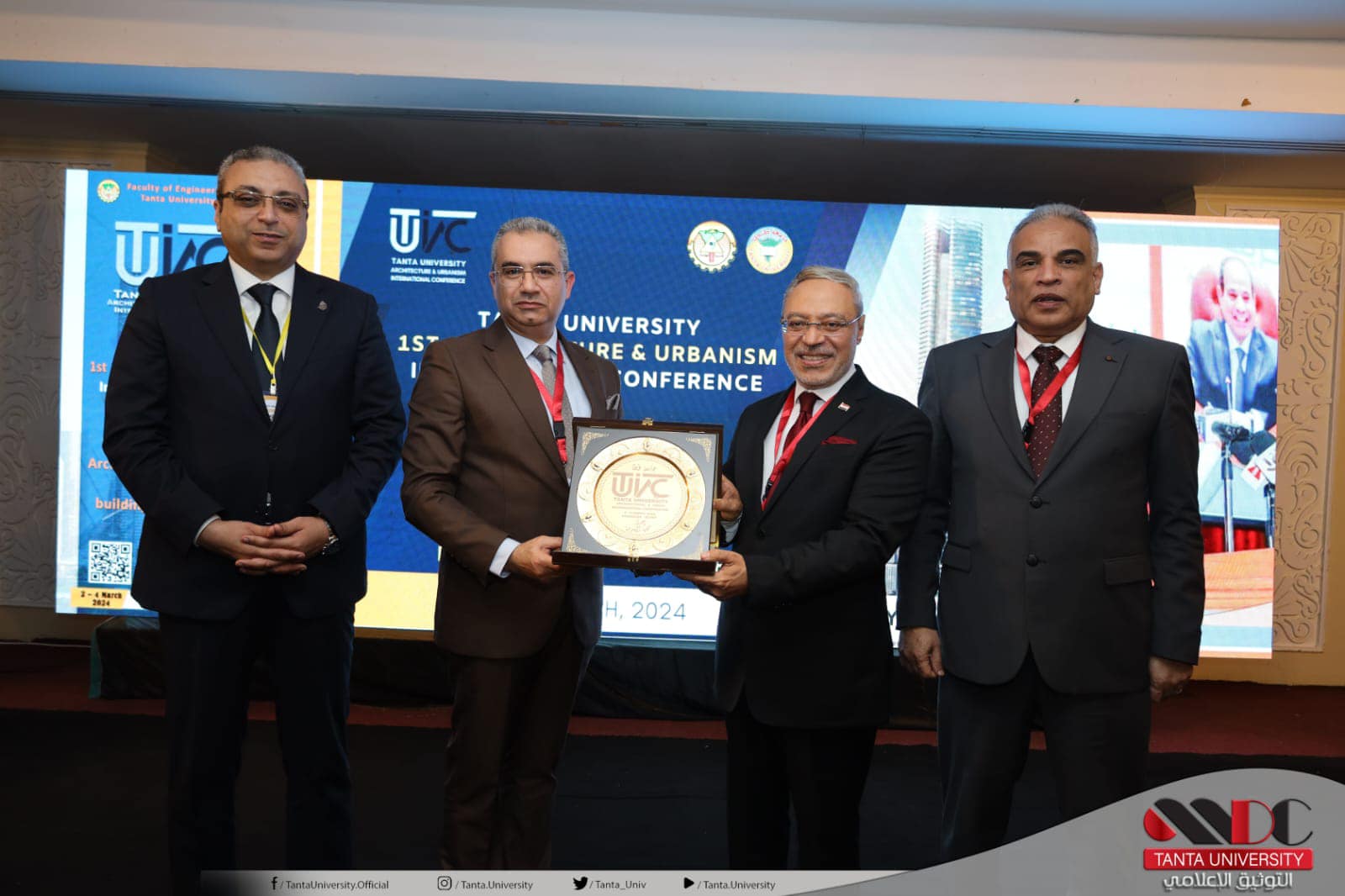 وفي ختام الجلسة الافتتاحية أهدى الدكتور محمود ذكي رئيس جامعة طنطا، درع المؤتمر إلى اللواء إيهاب رأفت مستشار محافظ البحر الأحمر، والدكتور أحمد عطا نائب محافظ الغربية، والدكتور محمد حسين نائب رئيس الجامعة لشئون التعليم والطلاب، والدكتور أحمد نصر عميد كلية الهندسة، وأهدى الدكتور أحمد نصر درع المؤتمر للدكتور محمود ذكي رئيس جامعة طنطا.