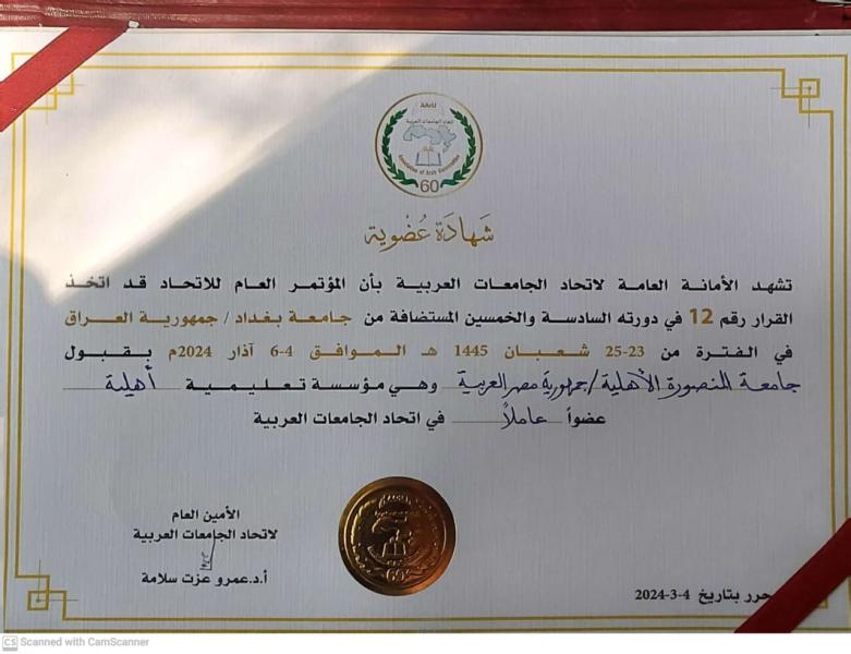 قبول جامعة المنصورة الأهلية عضوية اتحاد الجامعات العربية