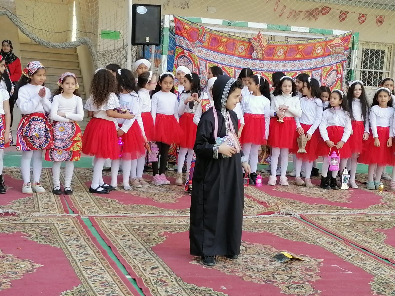 وشهد الحفل عمل عروض ومحاكاة لشخصيات رمضانية في أجواء من البهجة، حيث قدم طلاب المرحلة الابتدائية عروضا جسدوا فيها المسحراتي ورجل التنورة وفطوطة، في أجواء رمضانية مبهجة.