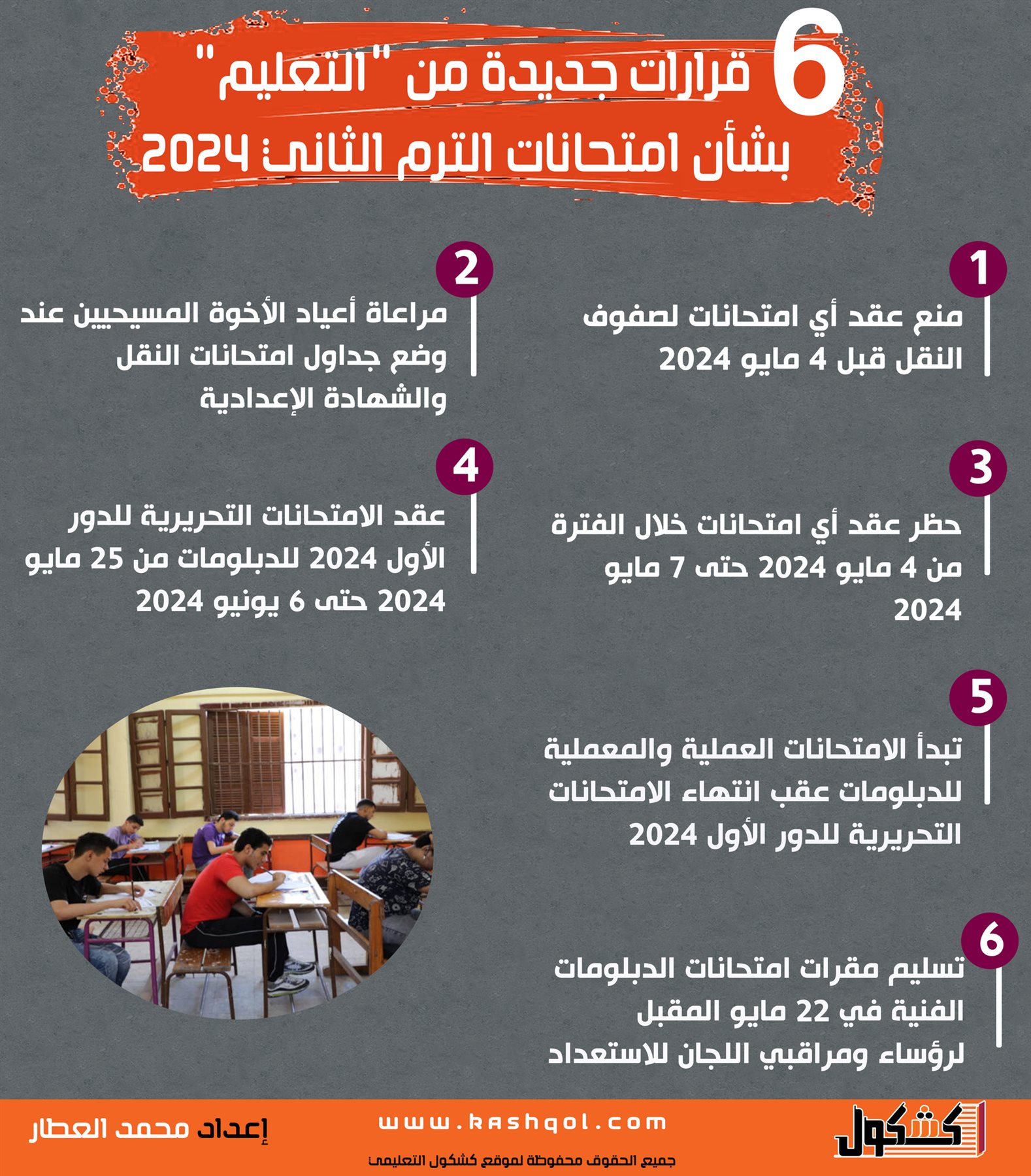 إنفوجراف| 6 قرارات جديدة من "التعليم" بشأن امتحانات الترم الثاني 2024