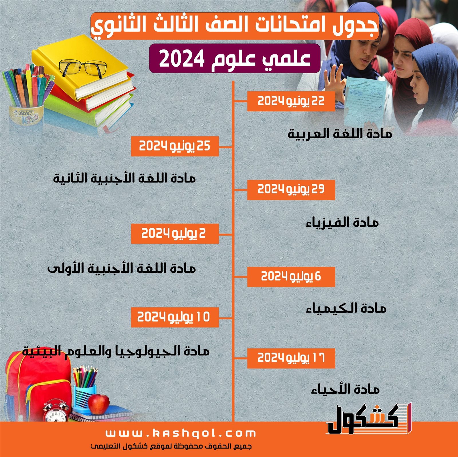 جدول امتحانات الصف الثالث الثانوي علمي علوم 2024 (إنفوجراف)