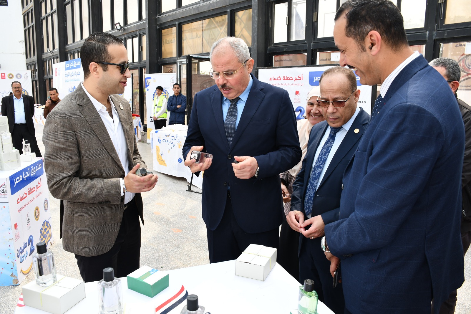 وخلال الافتتاح أشاد الدكتور ناصر مندور رئيس جامعة قناة السويس، بجهود صندوق تحيا مصر، ودعمه الدائم والمستمر لطلاب الجامعات الأولى بالرعاية، مشيدًا بالمعرض وجودة الملابس المعروضة به، التي تناسب جميع الأذواق، لافتًا إلى أن المبادرة تتبنى هدف إنساني نبيل هو تقليل العبء عن كاهل الأسر المصرية، ونشر ثقافة التوزيع العادل للاحتياجات الأساسية، مؤكدا أن الدولة لا تألو جهدًا في دعم ورعاية أبنائها وتوفير حياة كريمة لهم، مشيرًا إلى أن الرعاية التي يشهدها الطالب داخل الجامعة الآن غير مسبوقة على كافة المستويات سواء التعليمية، الصحية، فقد توجهت كافة المبادرات الرئاسية نحو تطوير المنظومة التعليمية والصحية، ودعمت الكثير من الجوانب الإنسانية.