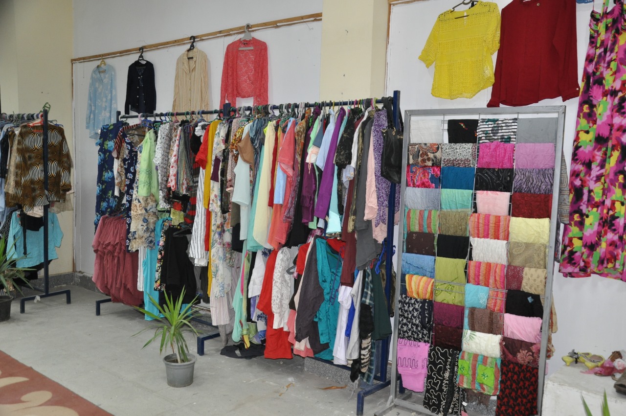 واشتمل المعرض على منتجات بجودة عالية من ملابس وأحذية ومنتجات جلدية وغيرها، بأسعار رمزية.