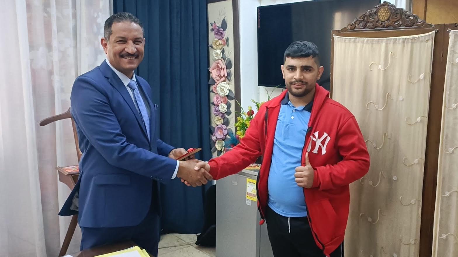 استقبل أشرف سلومة وكيل وزارة التربية والتعليم والتعليم الفني في الجيزة، بمكتبه الطالب "محمود أحمد" من مدرسة التربية الفكرية، بإدارة جنوب التعليمية ممثلًا عن أبناء تعليم الجيزة من ذوي الاحتياجات الخاصة.