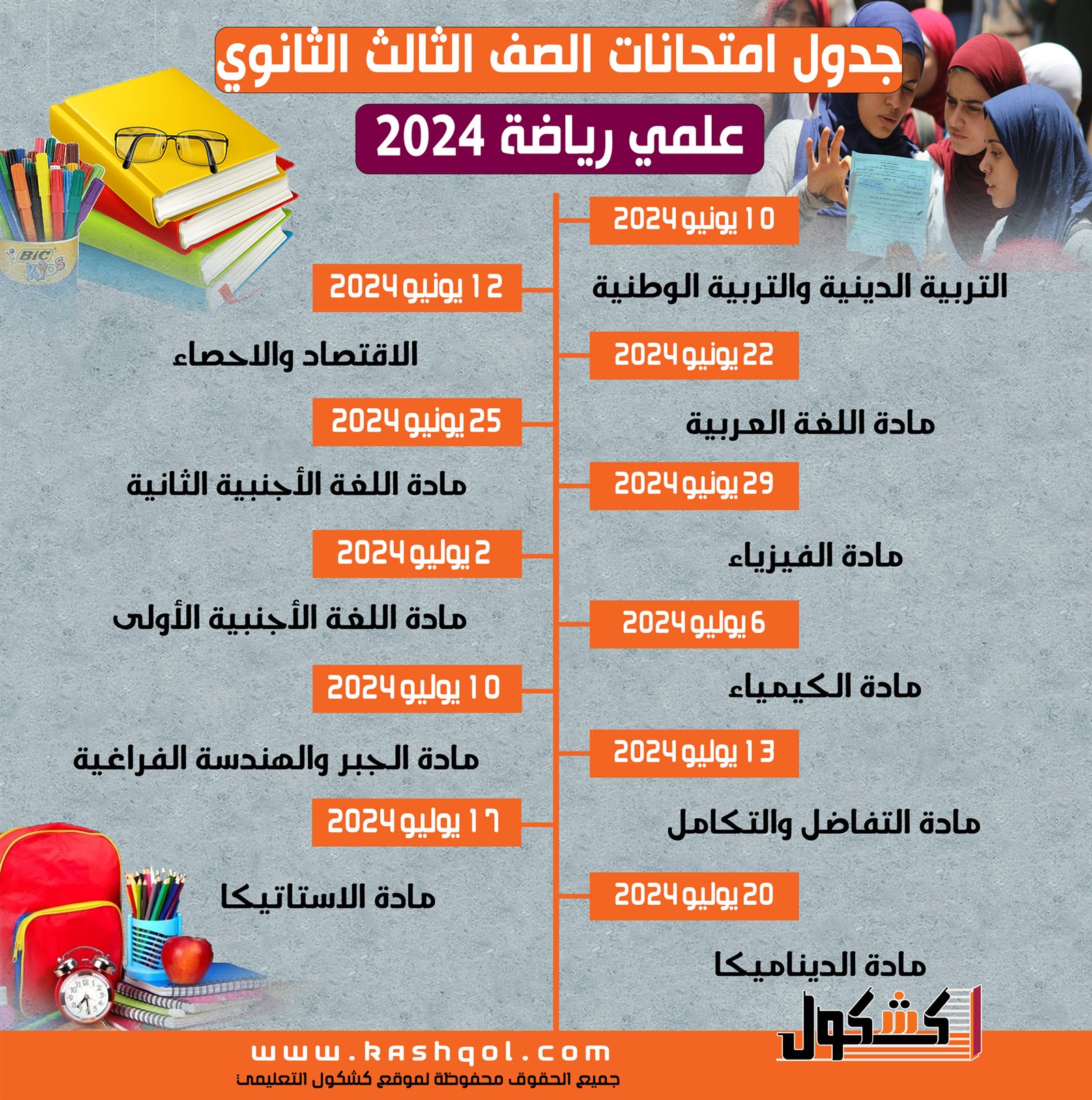 انفوجراف.. جدول امتحانات الصف الثالث الثانوي علمي رياضة 2024