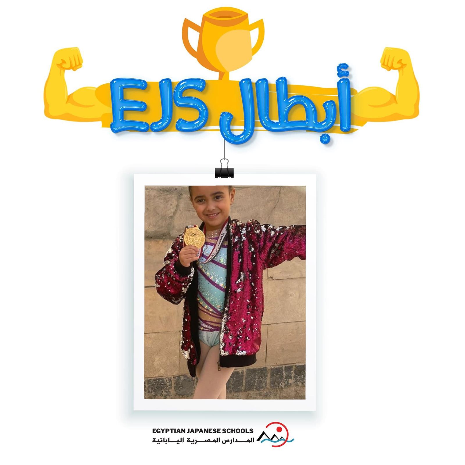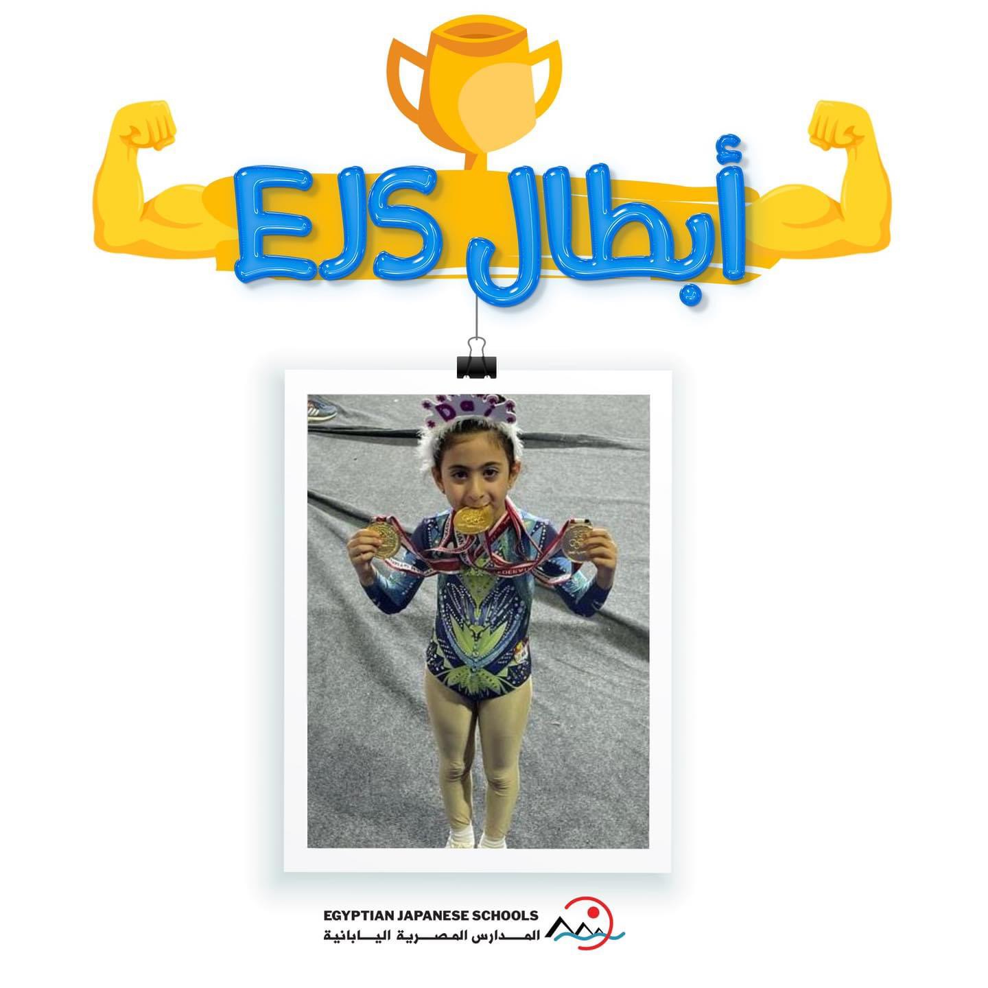 لحصولها على المركز الأول حر وحصد الميدالية الذهبية في بطولة كأس مصر مرحلة ٧ سنوات للموسم الأول ٢٠٢٣- ٢٠٢٤ لجمباز الأيروبيك الفردي.